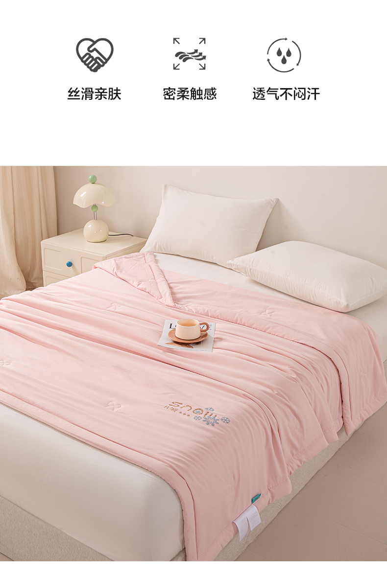 心悦家纺 2026新款简约有氧凉感冰丝夏被夏凉被空调被 蜜桃粉