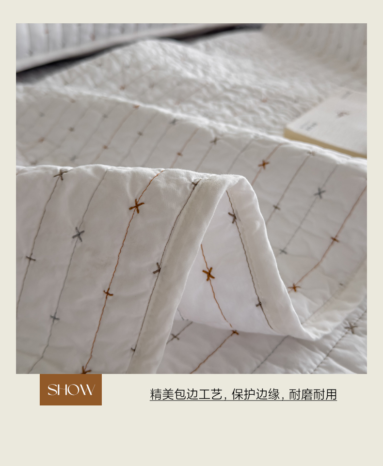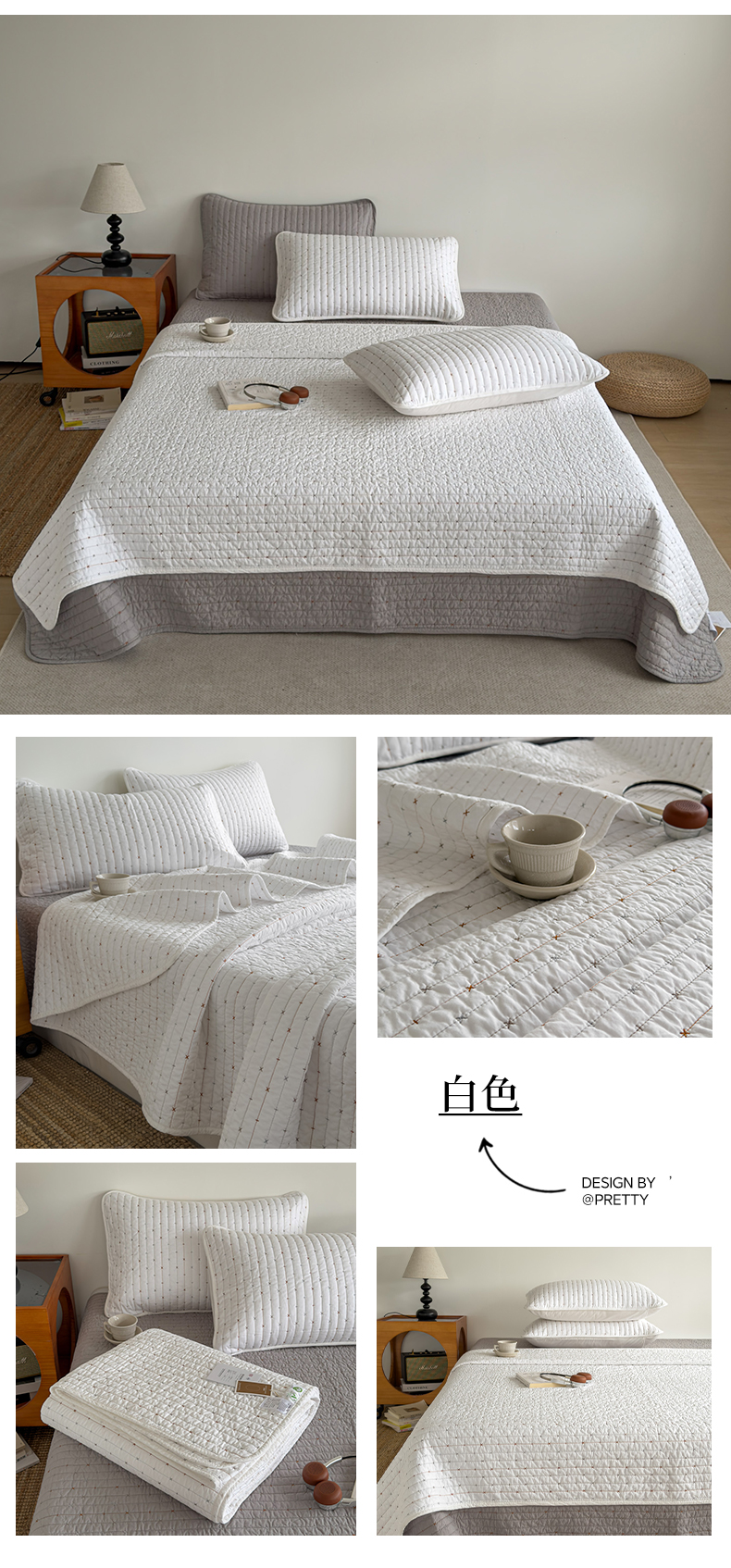 商品名称:沐纯家居 2026新款60支全棉纯棉米粒绣纯色床盖三件套 白色