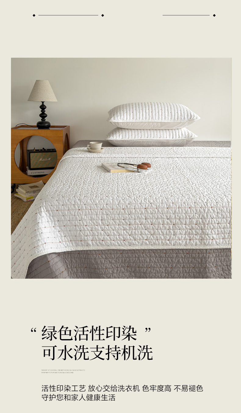 沐纯家居 2025新款婴儿绒纯棉水洗床盖月光格-灰,月光格-灰