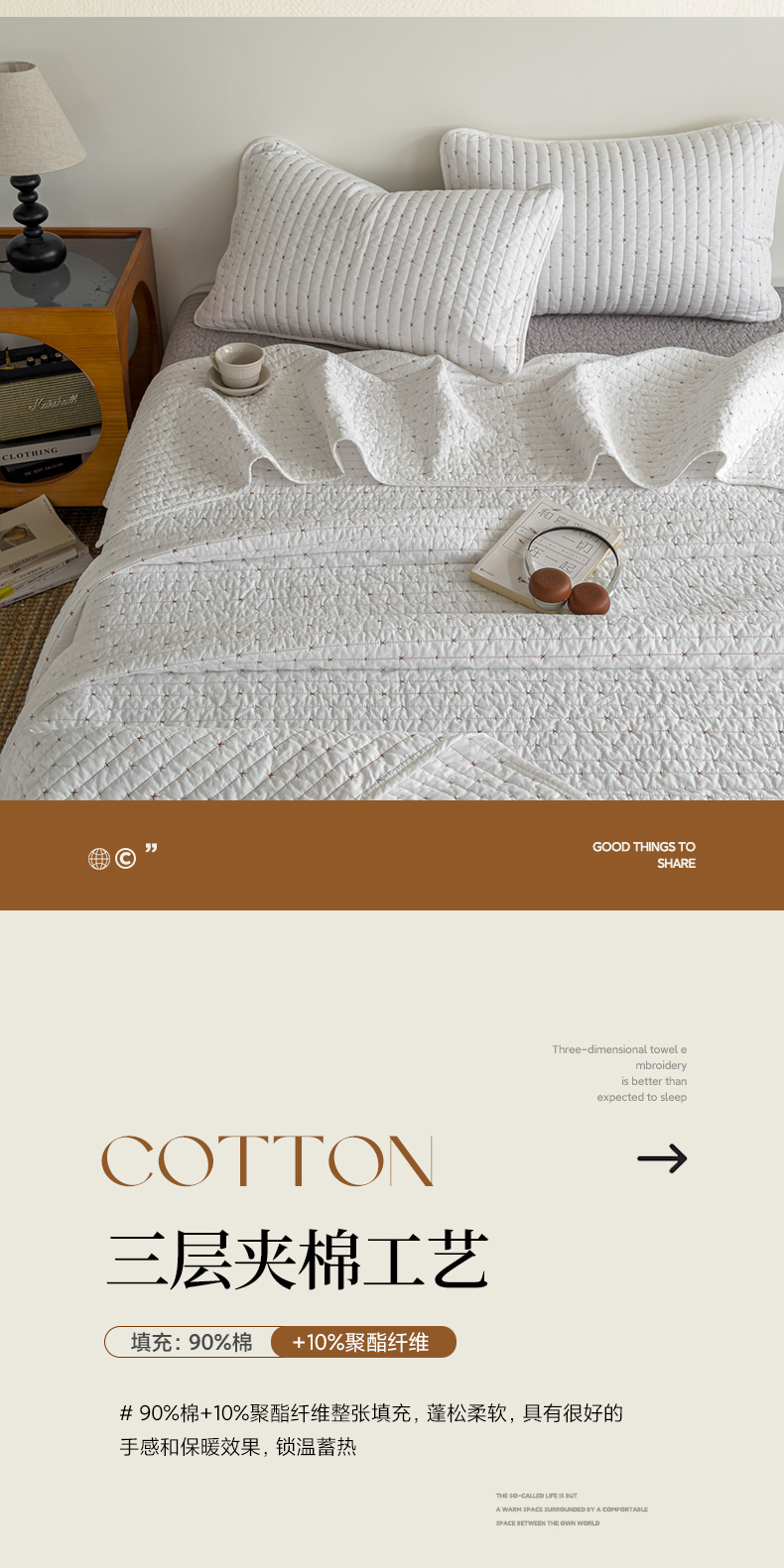 沐纯家居 2026新款60支全棉纯棉米粒绣纯色床盖三件套 白色