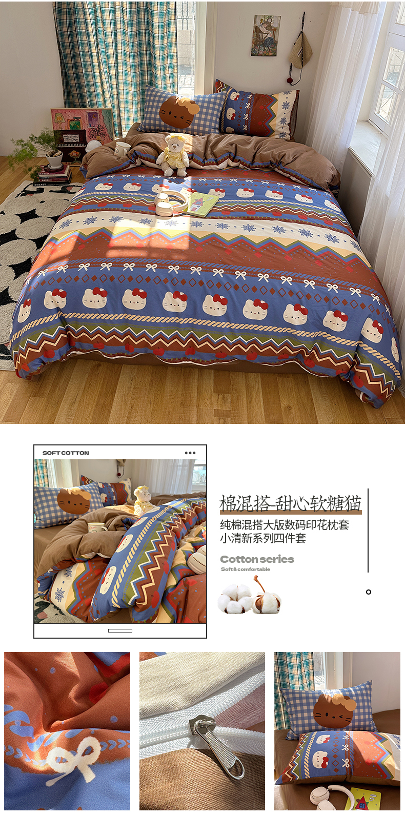 商品名称:桃子家居 2026新款纯棉混搭大版数码印花枕套小清新猫咪可爱系列四件套 棉混搭-彩虹马卡龙