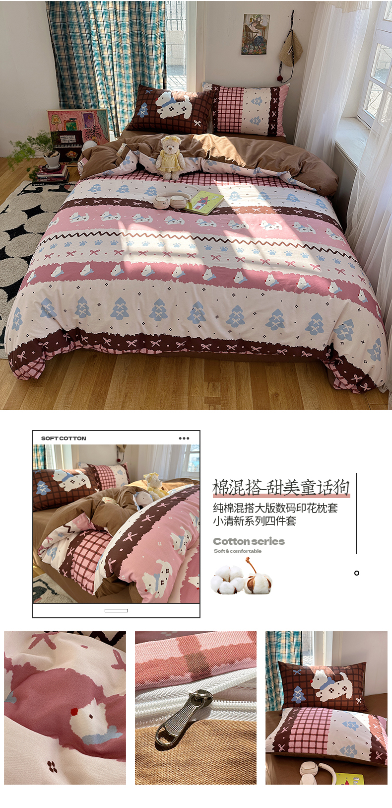 (总)桃子家居 2026新款纯棉混搭大版数码印花枕套小清新猫咪可爱系列四件套,棉混搭-彩虹马卡龙,棉混搭-红格幸运星,棉混搭-可可布丁猫,棉混搭-梦幻森林马,棉混搭-奶糖可可猫,棉混搭-苹果哈曼猫,棉混搭-甜美童话狗,棉混搭-甜心软糖猫