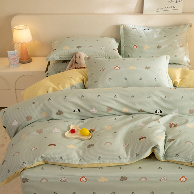 八十八家纺 2025新款全棉12868床笠款四件套 萌宠乐园