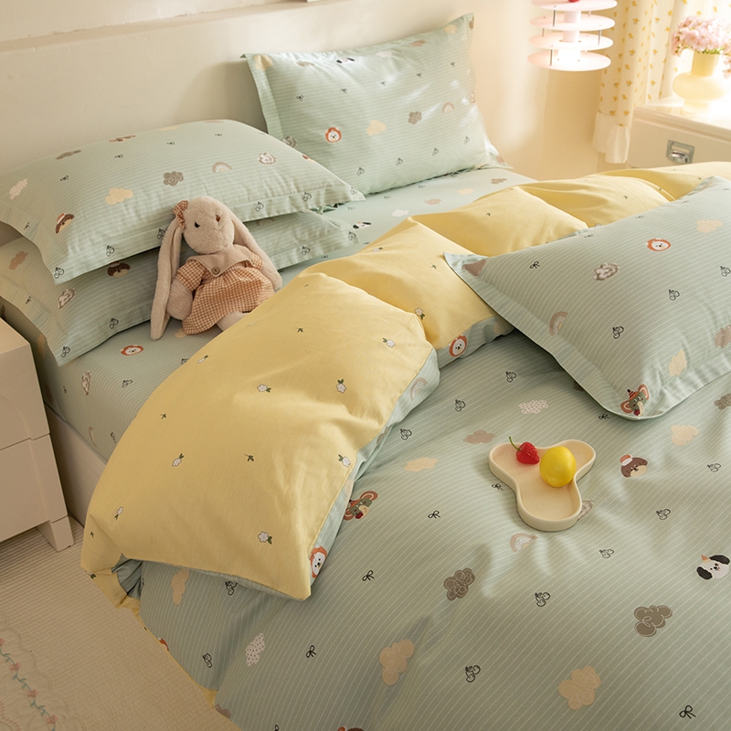 商品名称:八十八家纺 2025新款全棉12868床笠款四件套 萌宠乐园