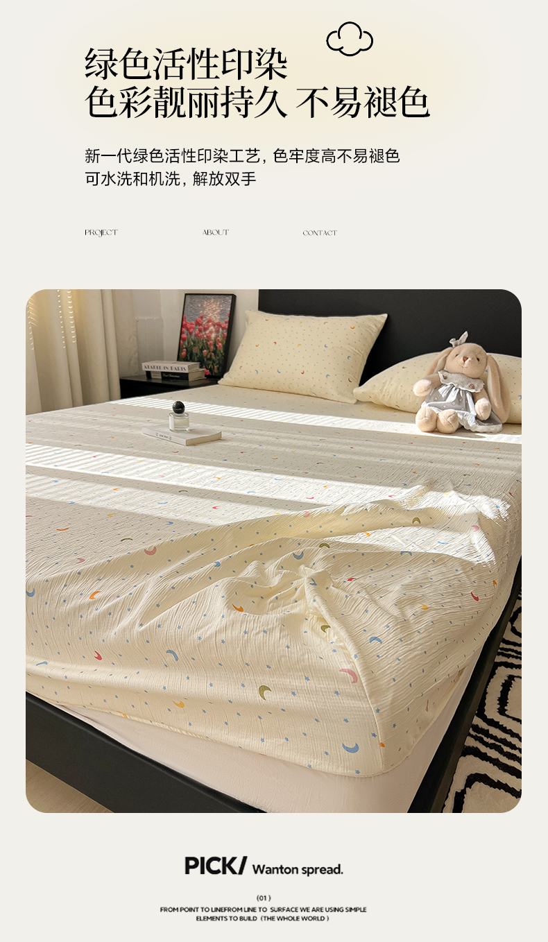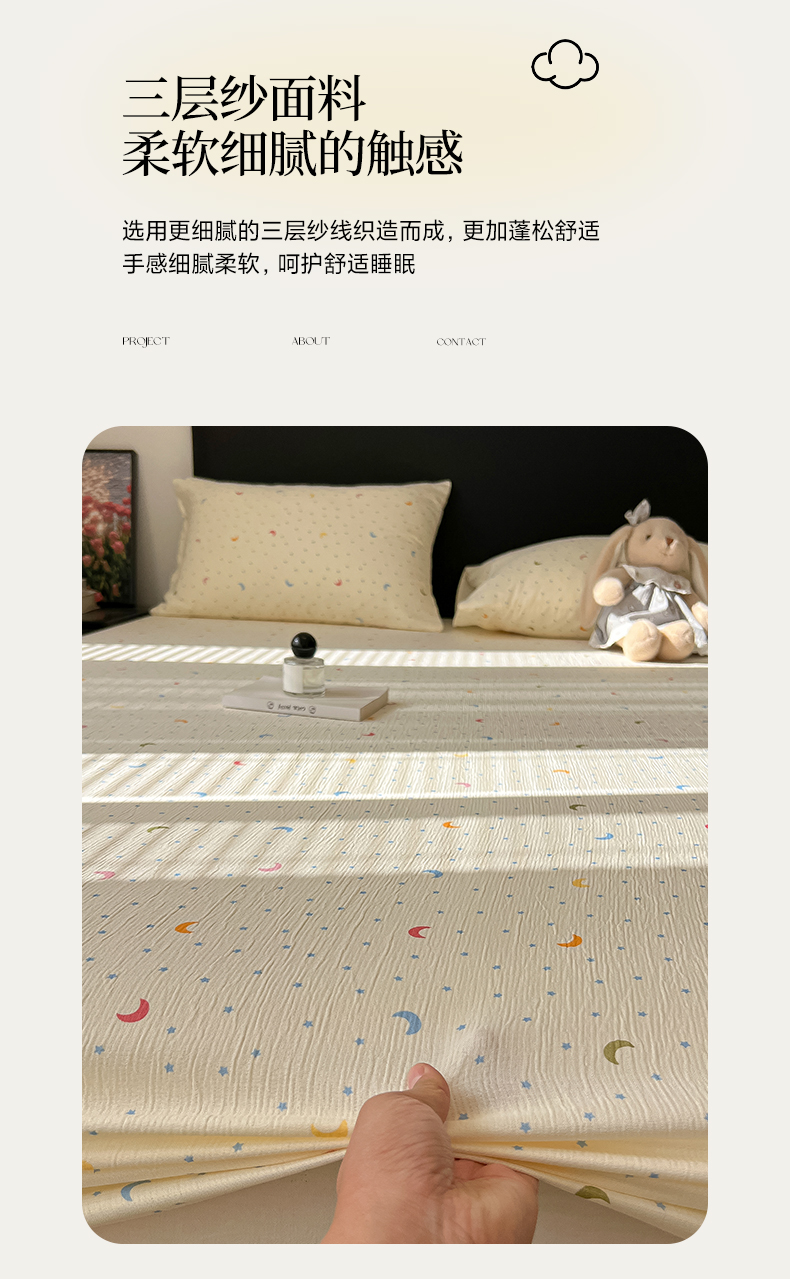 • 91家纺网 家纺一手货源 找家纺 韩巢家纺 2026新款三层纱单床笠热销款防滑床笠单件 星月天空