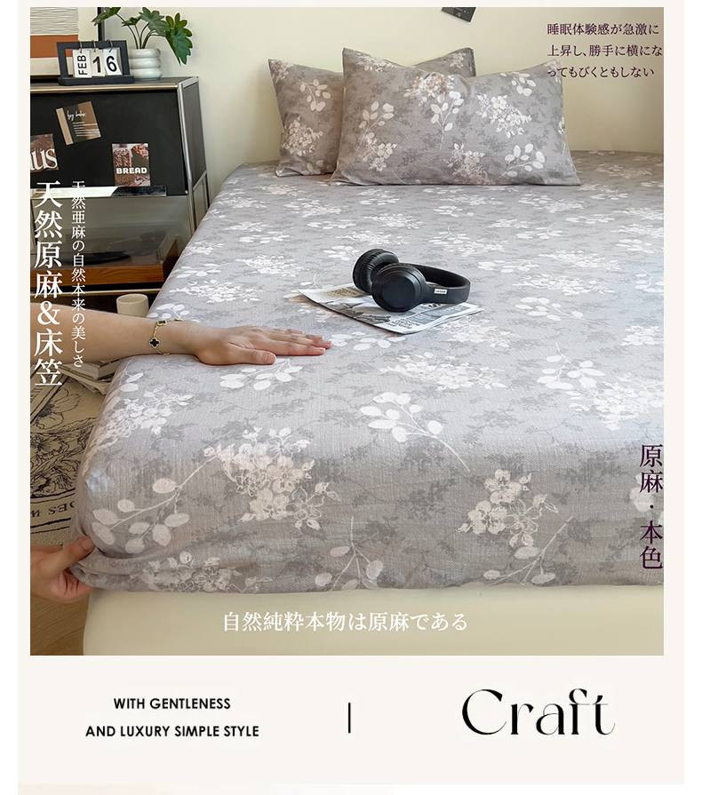 爱彼家纺 2026新款复古原麻单床笠 床笠单件 复古原麻-山野春花