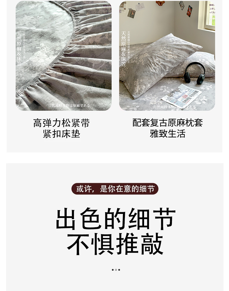 • 91家纺网 家纺一手货源 找家纺 爱彼家纺 2026新款复古原麻单床笠 床笠单件 复古原麻-山野春花