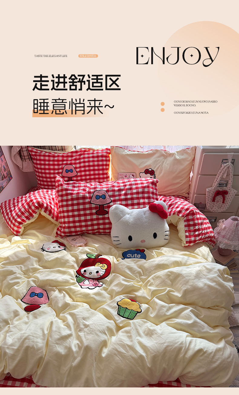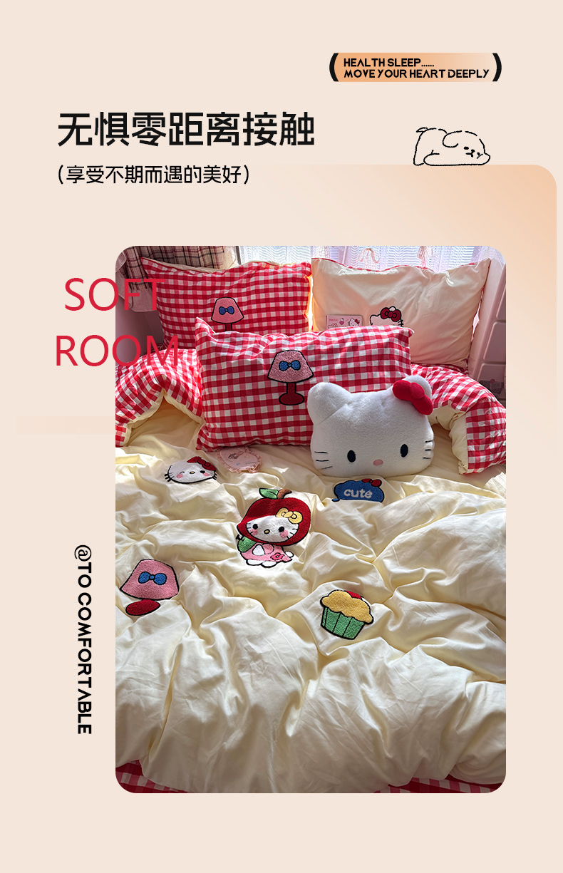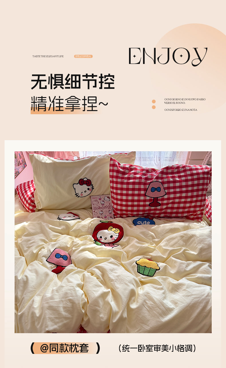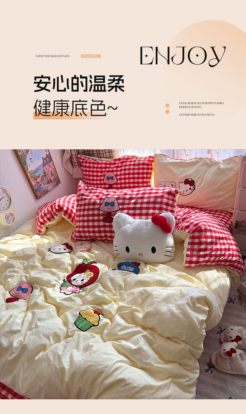 当前位置: 91家纺网 > 商品网购 > 床品套件 > 四件套 > 毛巾绣四件套 > 原素 2026新款新春卡哇伊毛巾绣四件套 苹果KT猫