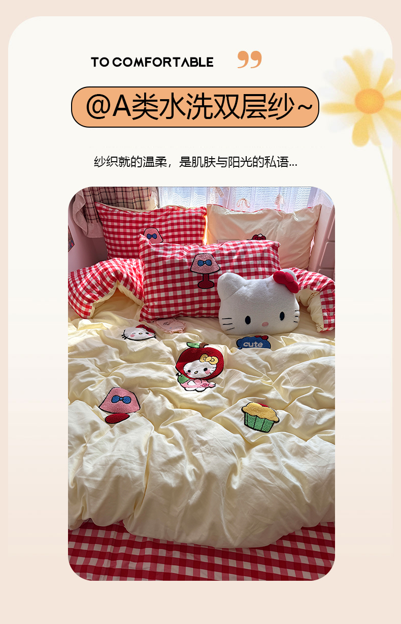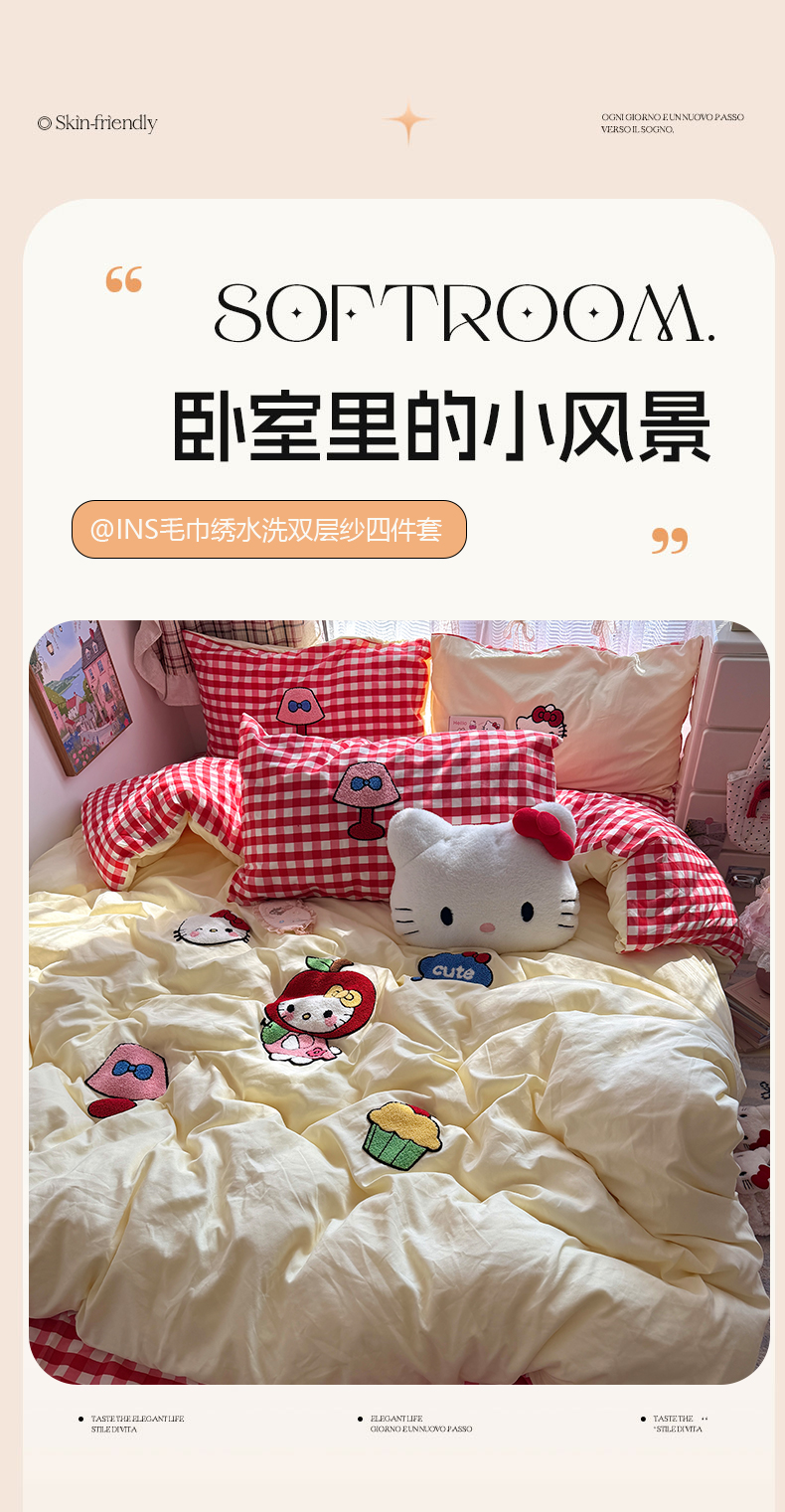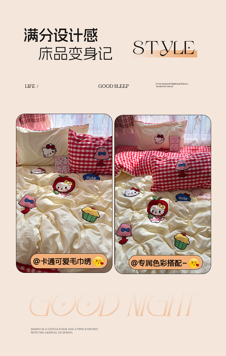 当前位置: 91家纺网 > 商品网购 > 床品套件 > 四件套 > 毛巾绣四件套 > 原素 2026新款新春卡哇伊毛巾绣四件套 苹果KT猫