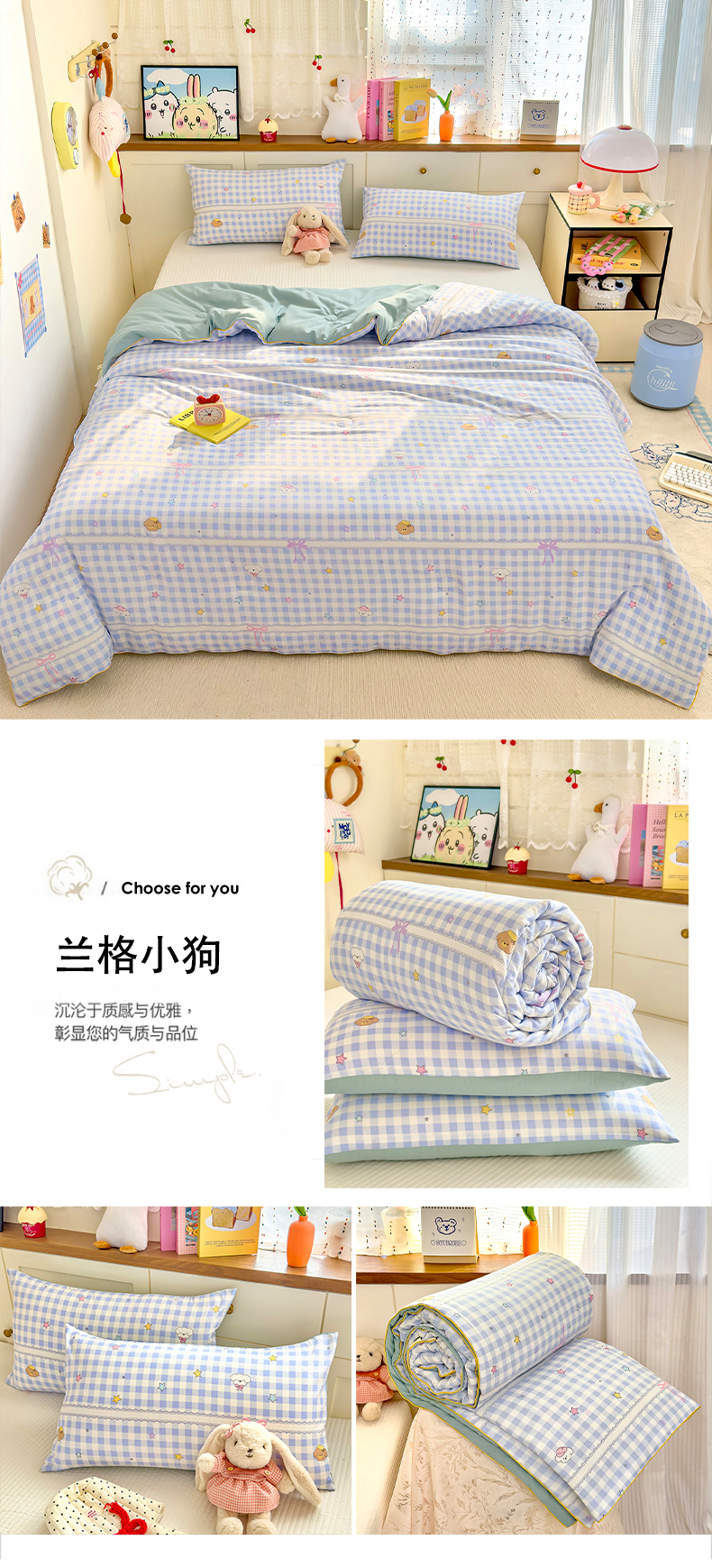 商品名称:金蕊阁 2025新款A类水洗双层纱夏被大豆夏被夏凉被空调被兰格小狗