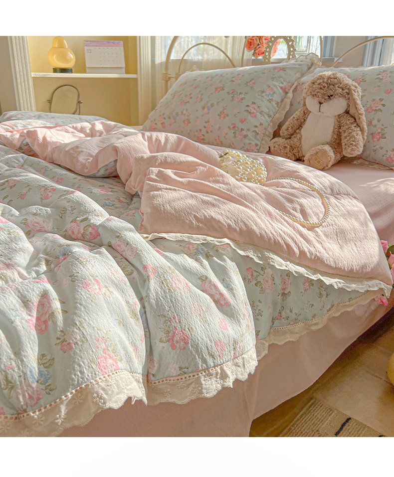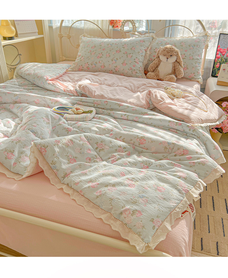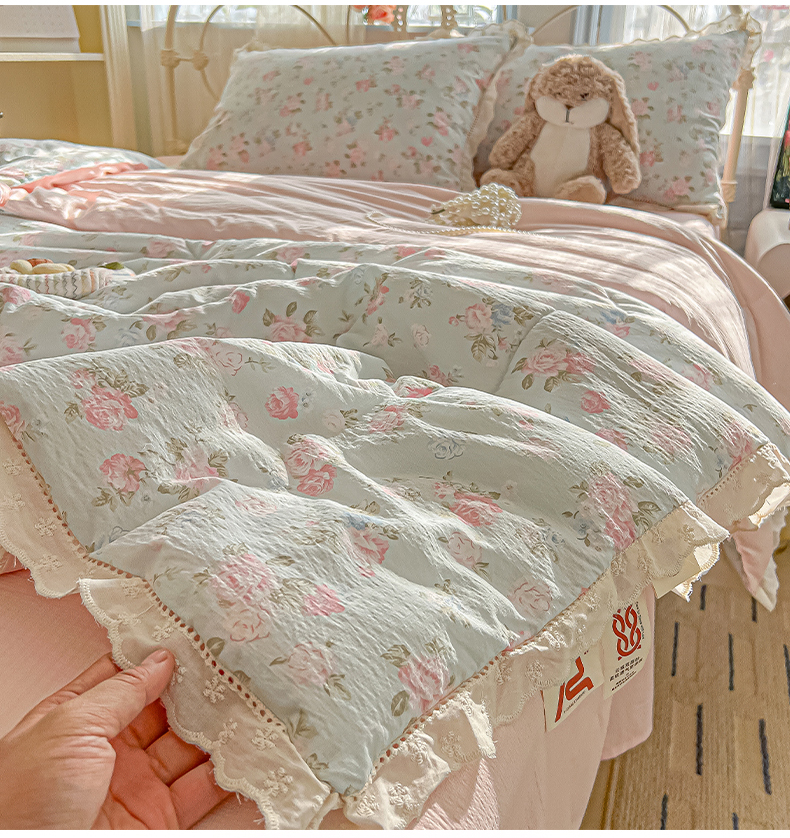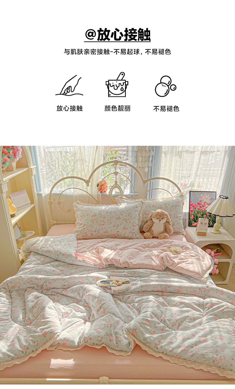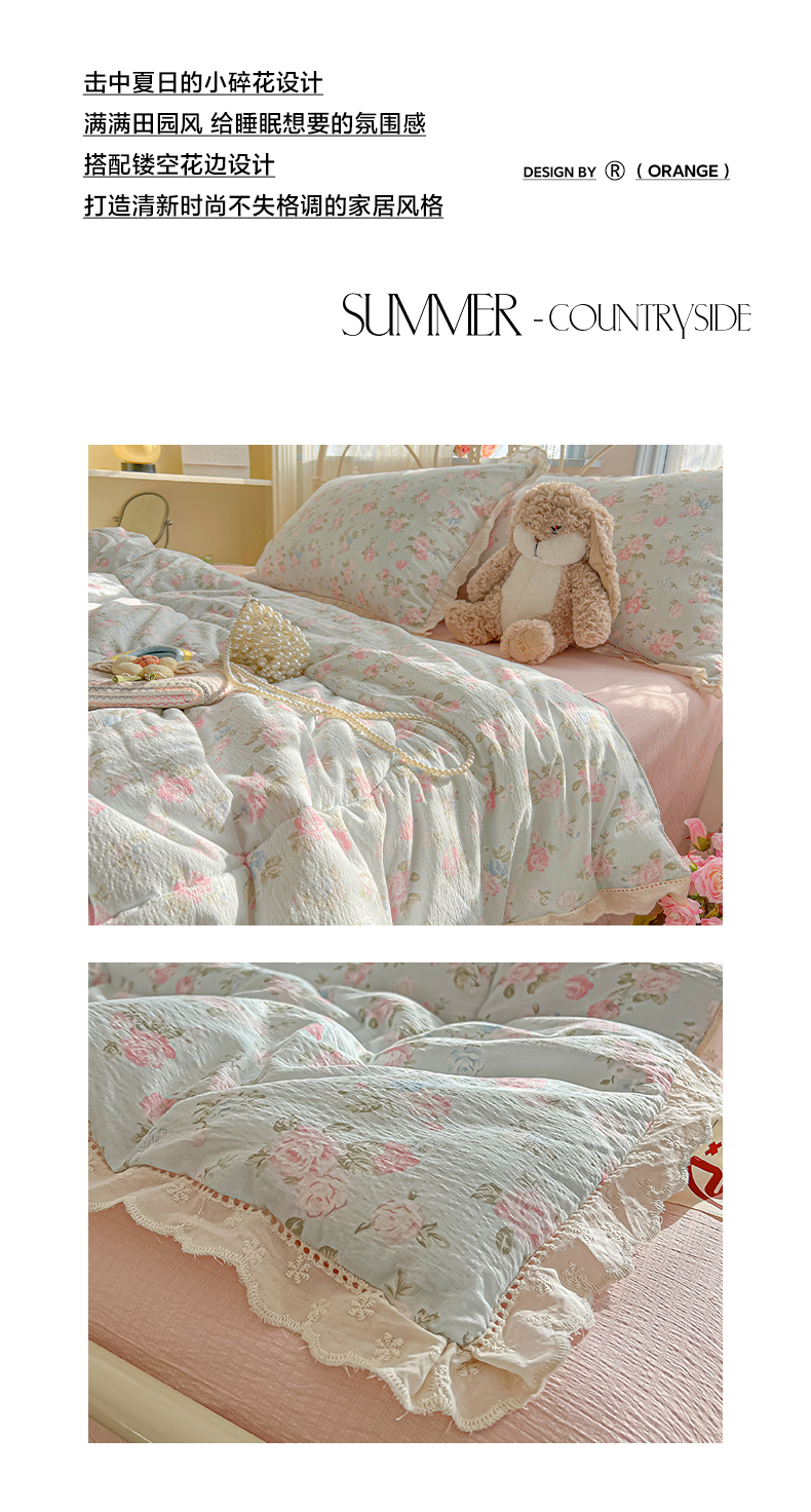 商品名称:(总)罗亿家纺 2026新款全棉镂空花边云感双层纱夏被四件套