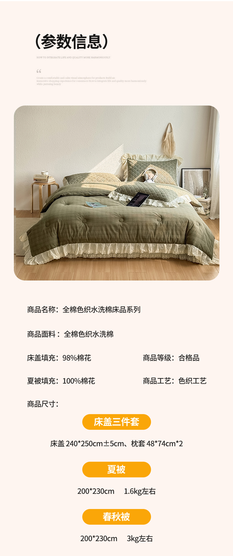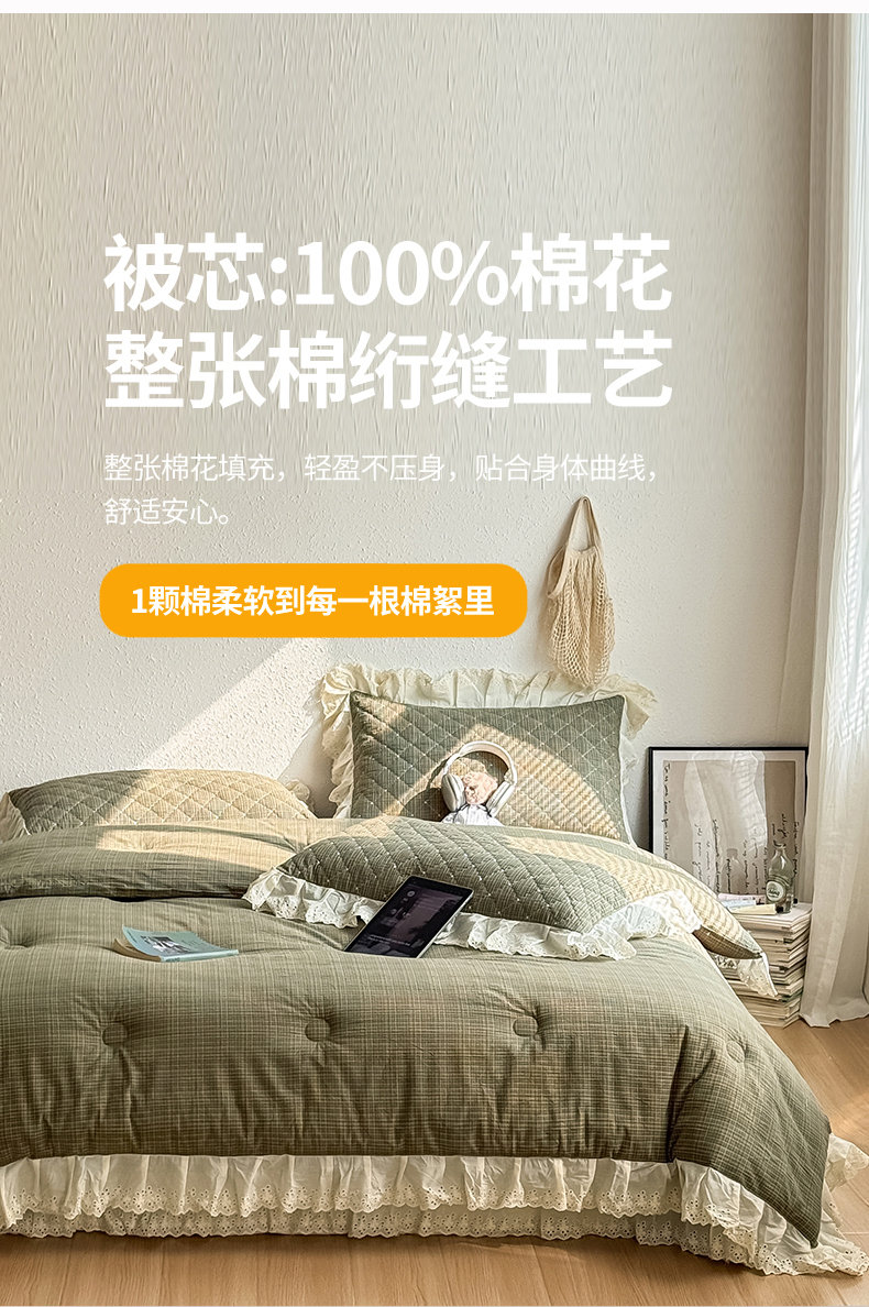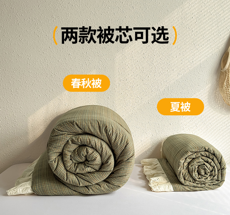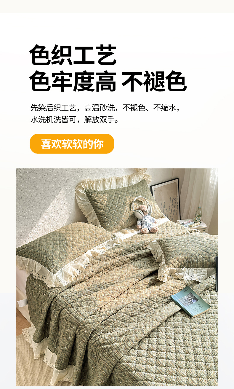 商品名称:橙子家居 2026新款全棉纯棉色织水洗棉棉花床盖四件套 安哥拉-绿