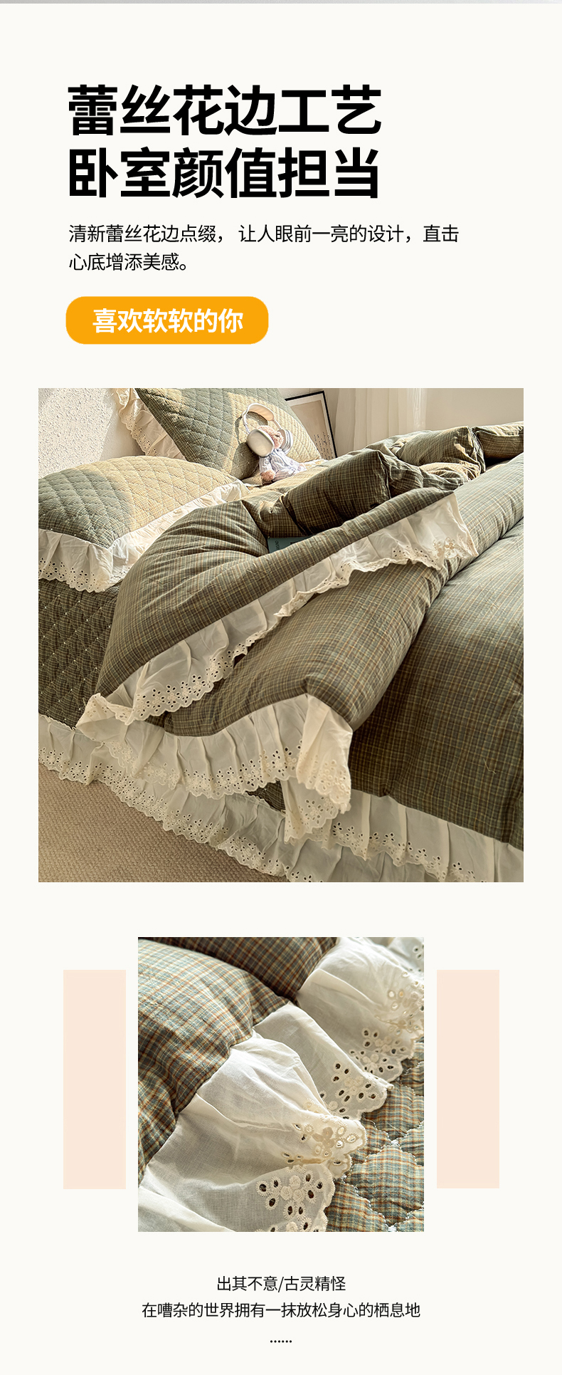 (总)橙子家居 2025新款小清新全棉纯棉花边款床单四件套,春风里-紫,琥珀流光,蓝心兔,玲娜,梦幻花园兔,舒芙蕾,甜甜夏日,芋泥啵啵