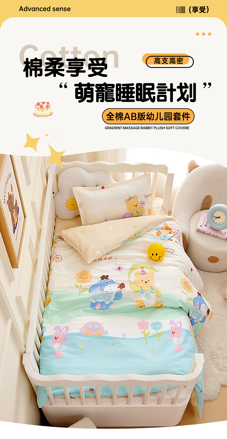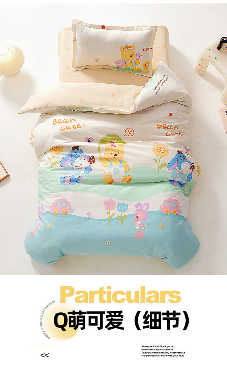 当前位置: 91家纺网 > 商品网购 > 床品套件 > 多件套 > 多件套 > 芭伯妮2025AB版全棉幼儿园三件套儿童被子套件六件套 蜜糖晴天