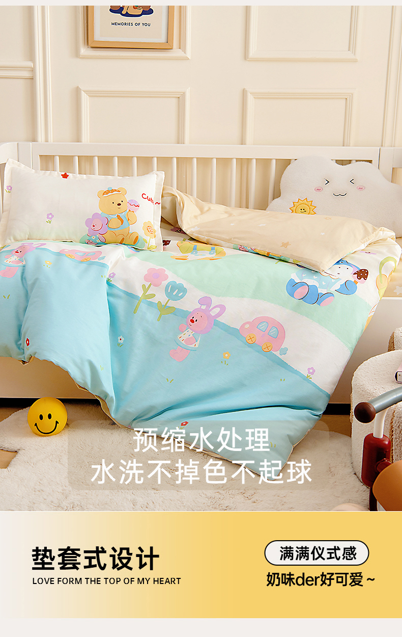 当前位置: 91家纺网 > 商品网购 > 床品套件 > 四件套 > 其它四件套 > 芭伯妮 2026新款全棉AB版幼儿园三件套宝宝午睡被子六件套儿童被套多件套(第一批) 蜜糖晴天