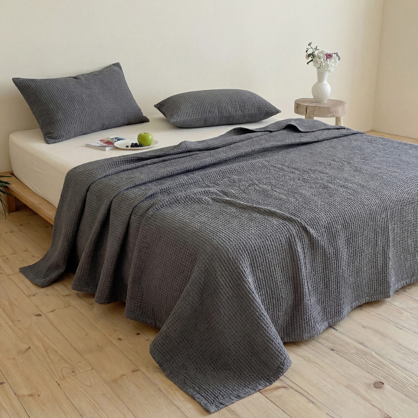 (总)上喜 2025新款全棉砂洗床盖新升级第五代,白色,湖蓝,奶油米,深灰,深咖