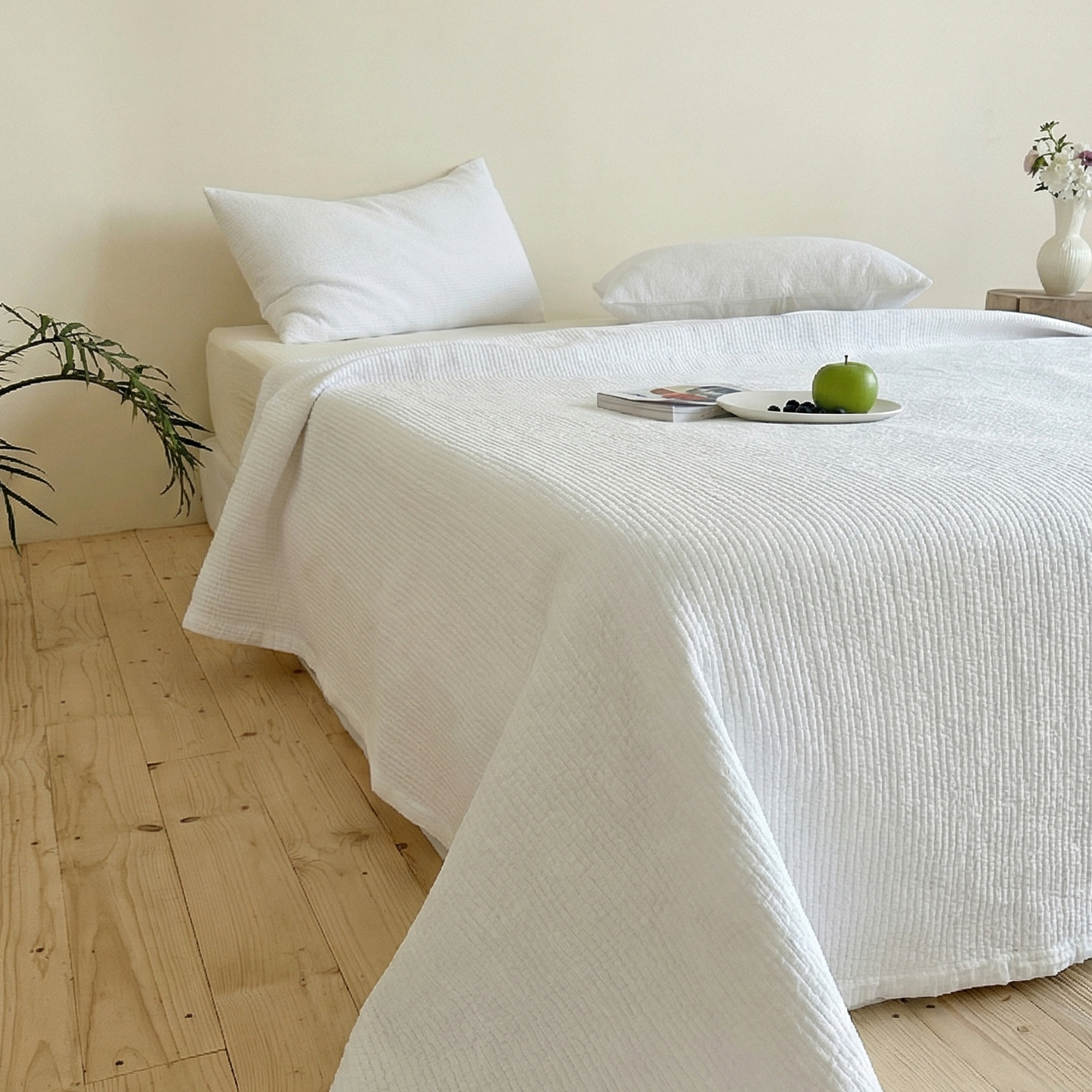 (总)上喜 2025新款韩国砂洗床盖+多功能夏被,白色,粉色,黄色,灰色,紫色