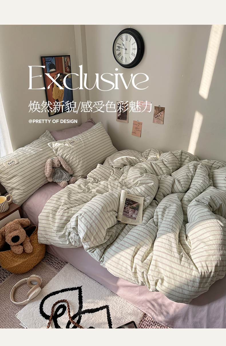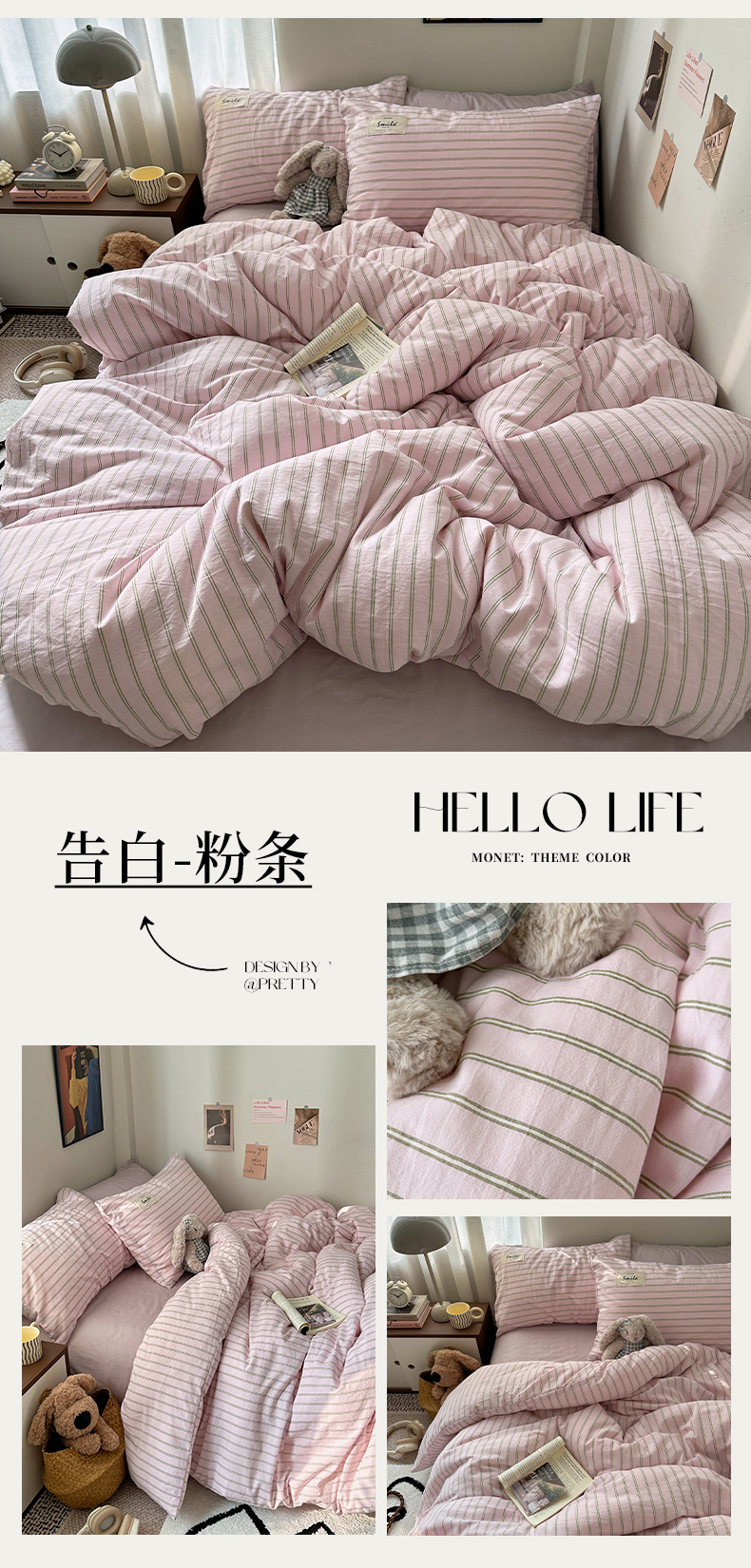 (总)艾咪-Amy ntmy 2026春夏新款布标款全棉纯棉色织水洗棉四件套-告白,告白-粉条,告白-米条,告白-蓝条,告白-绿条
