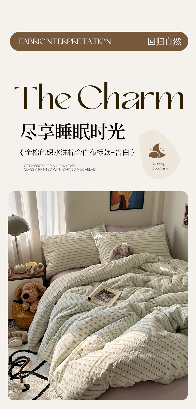 (总)艾咪-Amy ntmy 2026春夏新款布标款全棉纯棉色织水洗棉四件套-告白