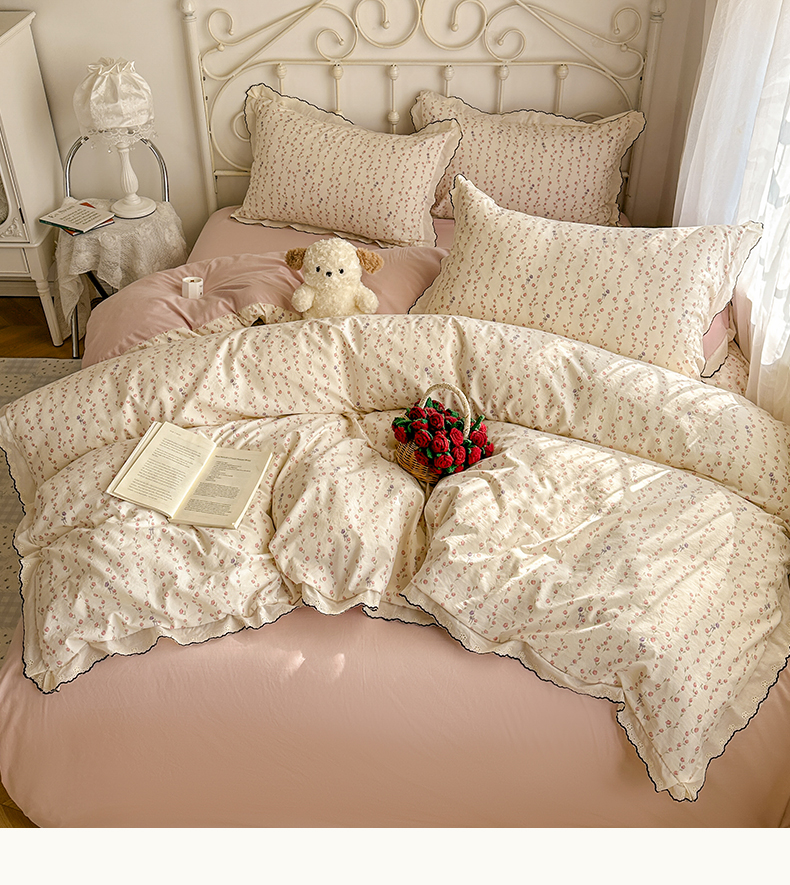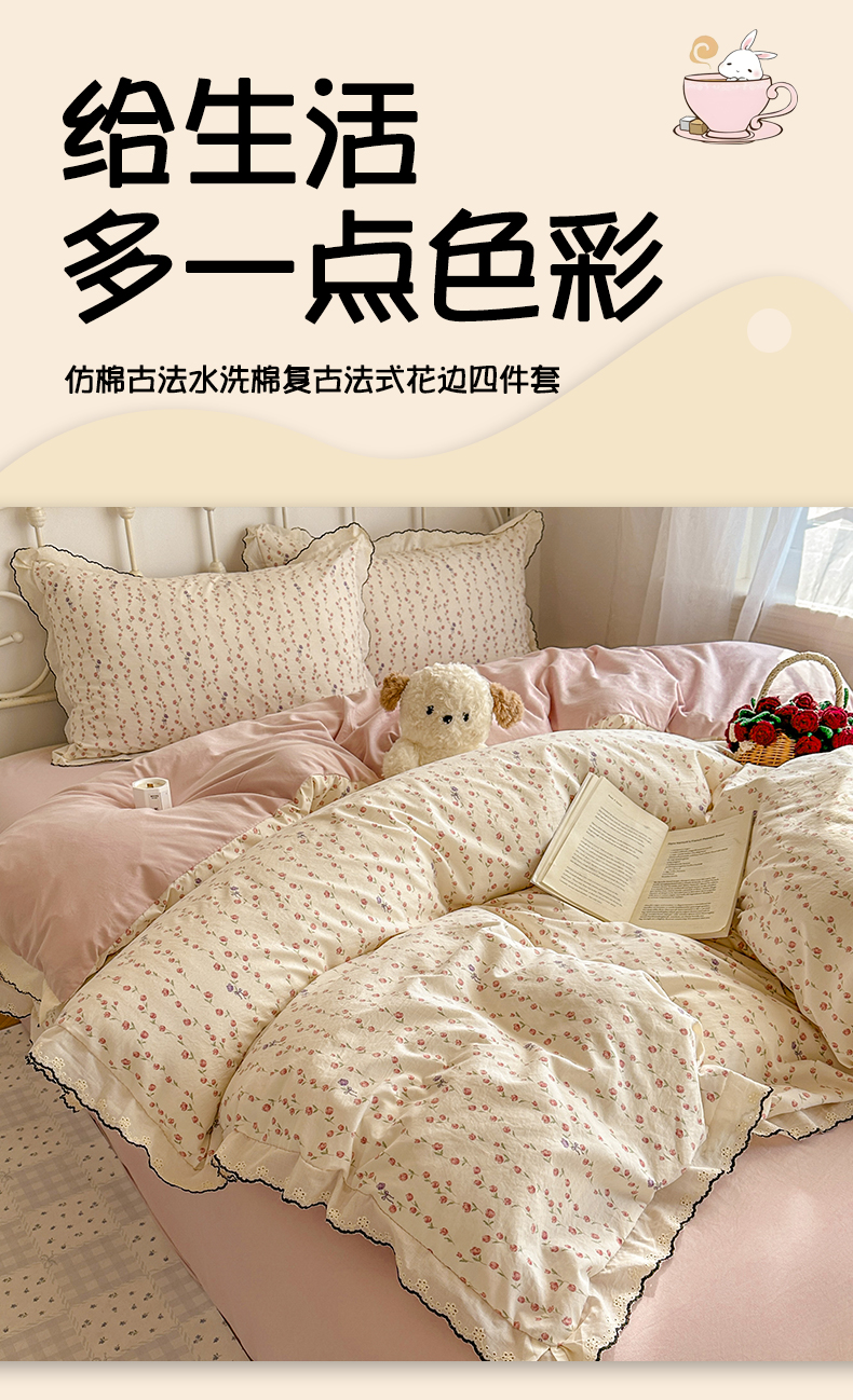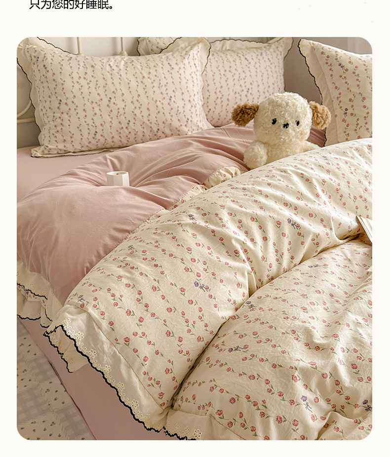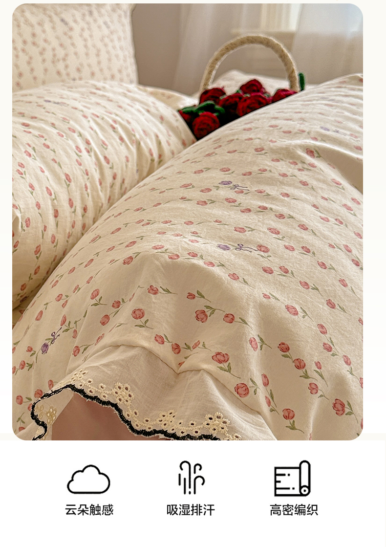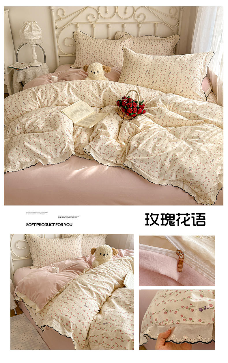 当前位置: 91家纺网 > 商品网购 > 床品套件 > 四件套 > 水洗棉四件套 > 晚爱家纺(原晚安家居) 2026春夏新款古法水洗棉复古法式花边四件套少女公主风 玫瑰花语