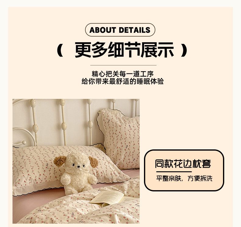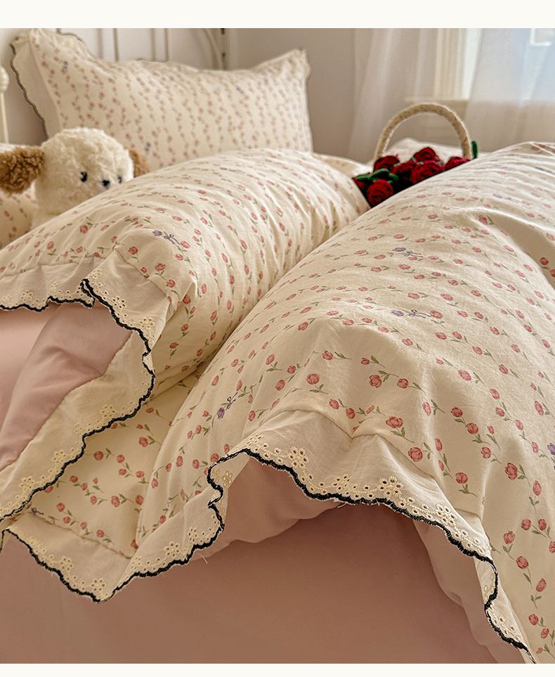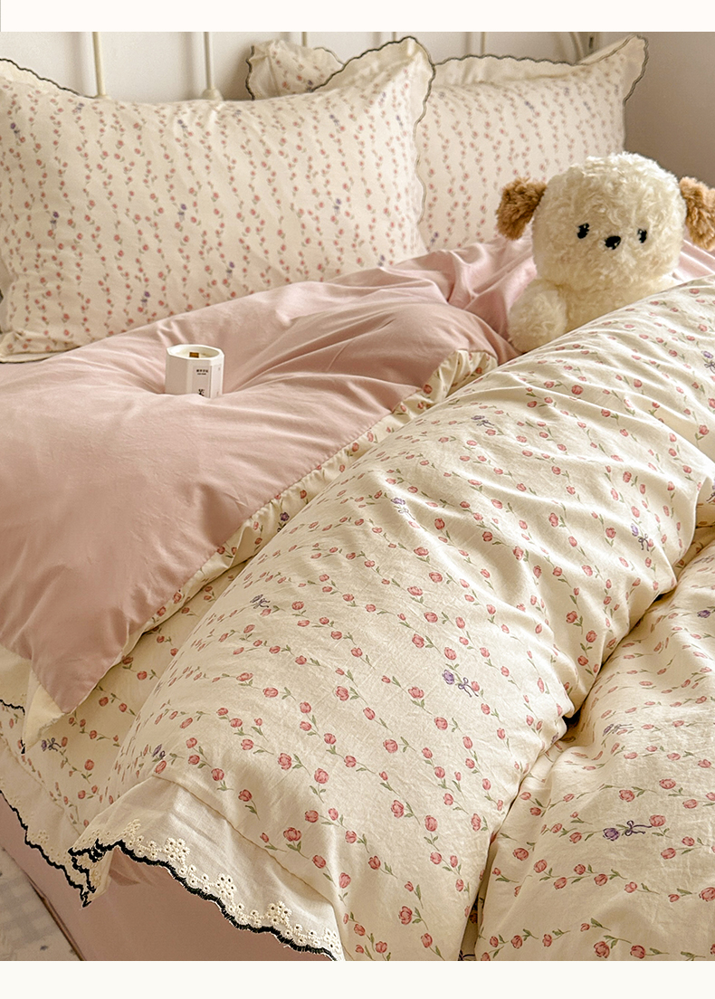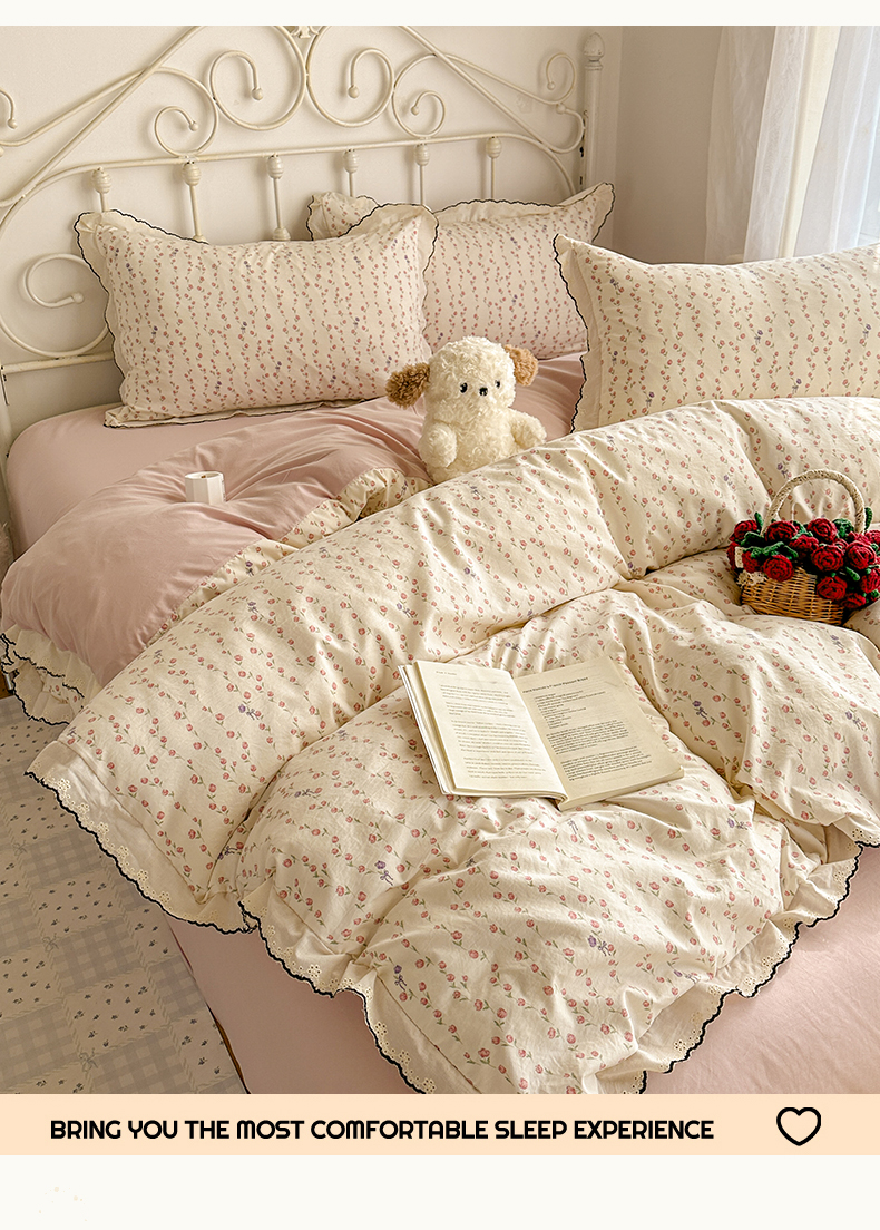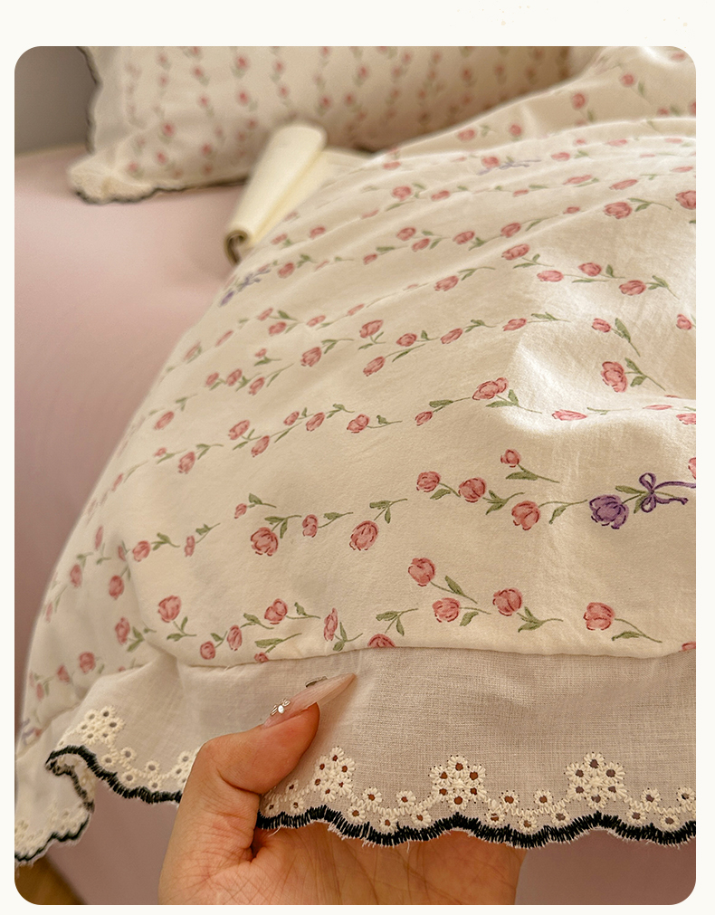 当前位置: 91家纺网 > 商品网购 > 床品套件 > 四件套 > 水洗棉四件套 > 晚爱家纺(原晚安家居) 2026春夏新款古法水洗棉复古法式花边四件套少女公主风 玫瑰花语