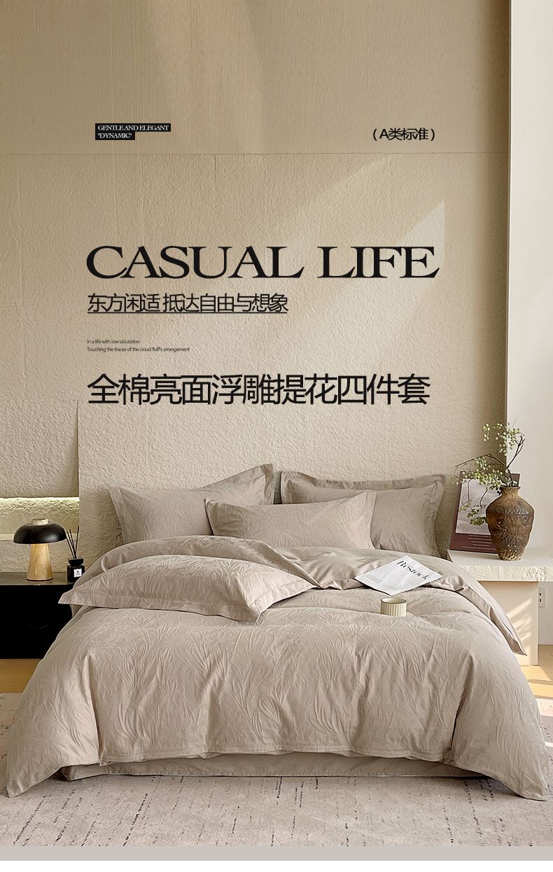 麦田家纺 2026新款A类全棉亮面浮雕提花四件套 秘境-金属灰