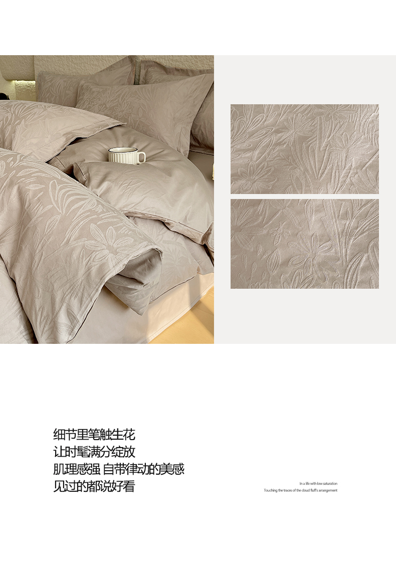 (总)麦田家纺 2026新款A类全棉亮面浮雕提花四件套,布兰卡-银灰,蝶梦-淡雅紫,蝶梦-唯美粉,梵花绘-浓粉,花柔玉净-金属灰,焦野-奶绿,浪漫情缘-米杏,梦幻花园-米杏,秘境-金属灰,欧陆庭园-金属灰,芊芊叶语-奶绿,森语集-银灰,山野慕色-深豆沙,石烁-太空灰,岁月留声-唯美粉