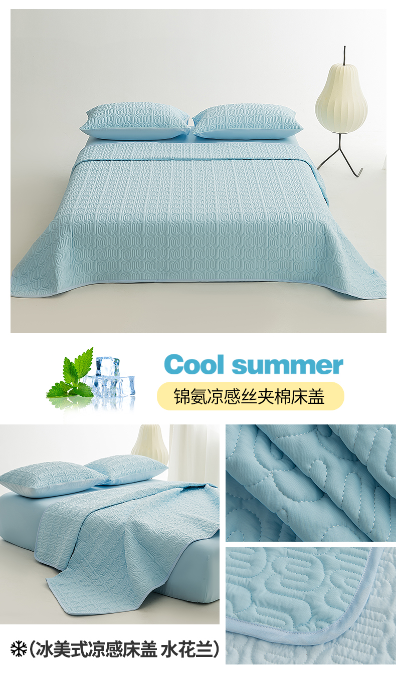恩和家纺 2026新款锦氨凉感丝夹棉床盖 冰美式凉感床盖 水花兰