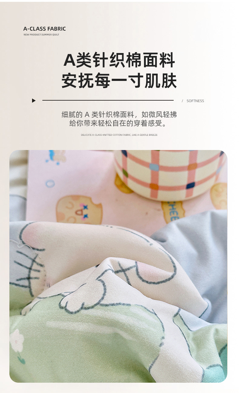 • 91家纺网 家纺一手货源 找家纺 优迈 2026新款A类针织棉嘟嘟被夏被春秋被空调被儿童学生被子被芯 喵喵屋