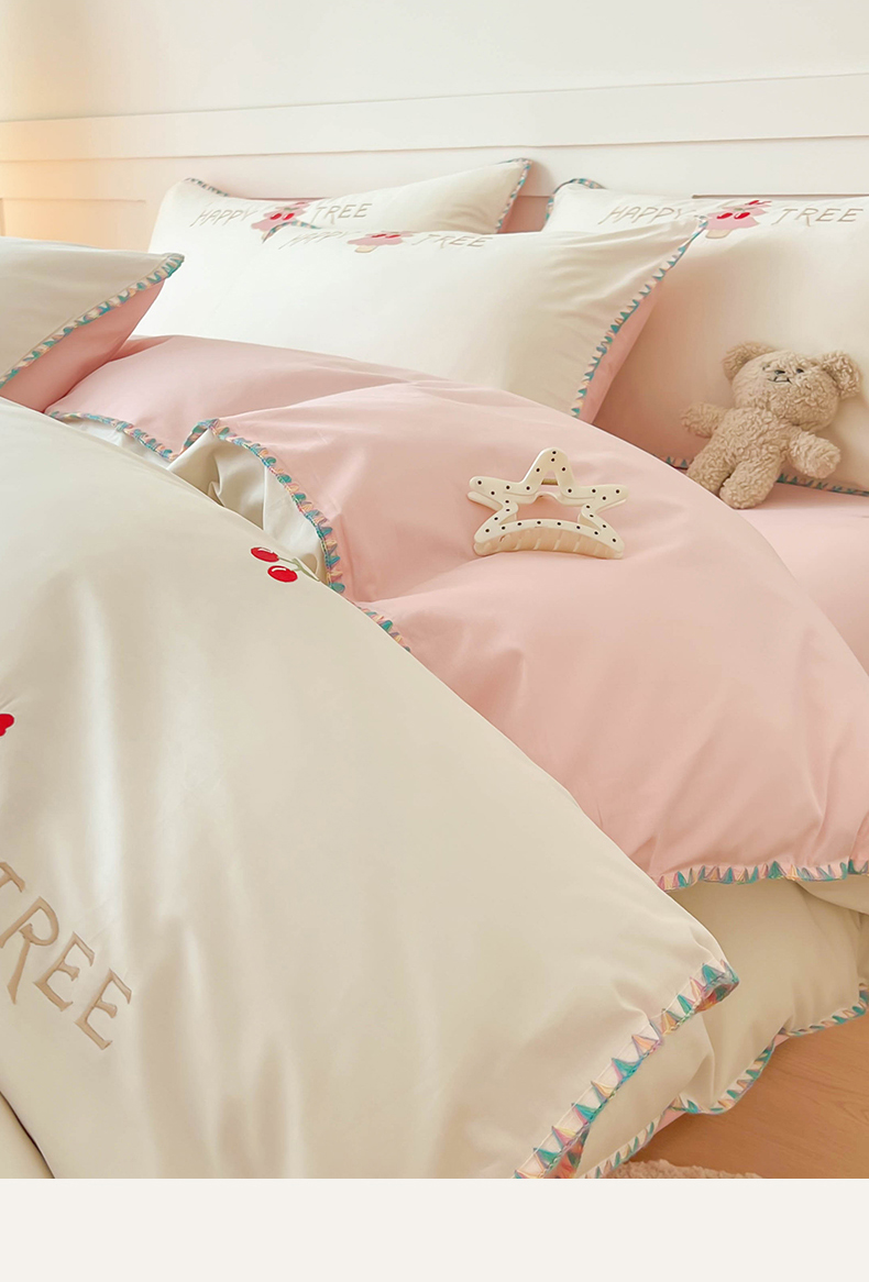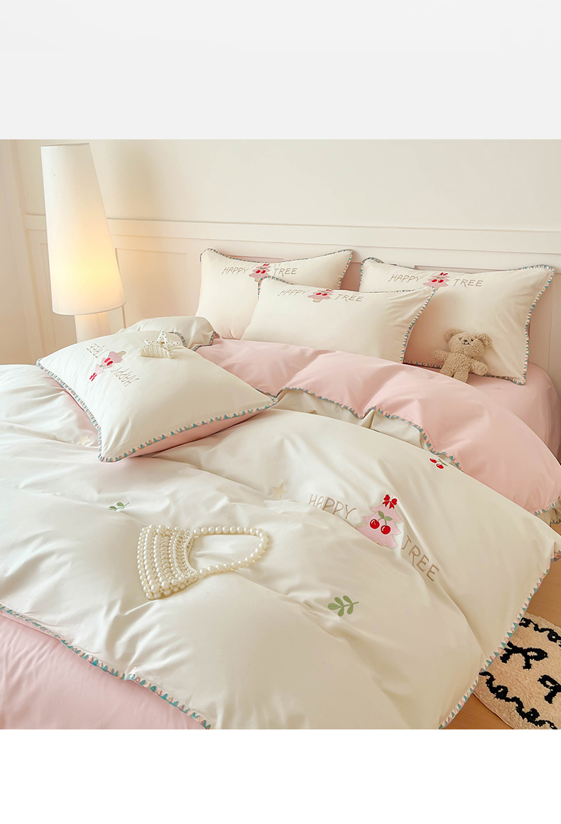 当前位置: 91家纺网 > 商品网购 > 床品套件 > 四件套 > 全棉普通四件套 > 蜜柚 2026新款全棉贝壳边小清新刺绣花四件套 幸福树-粉