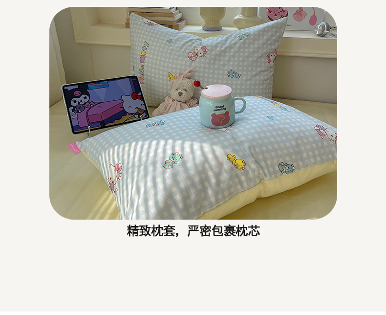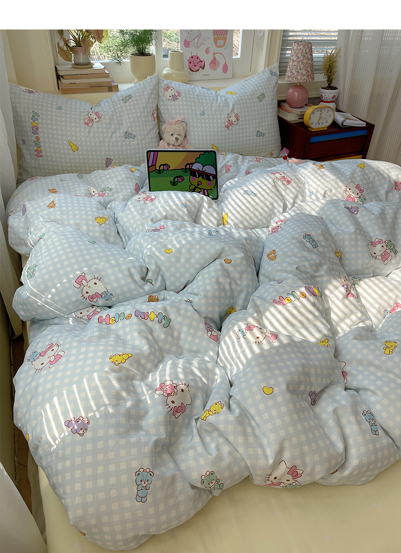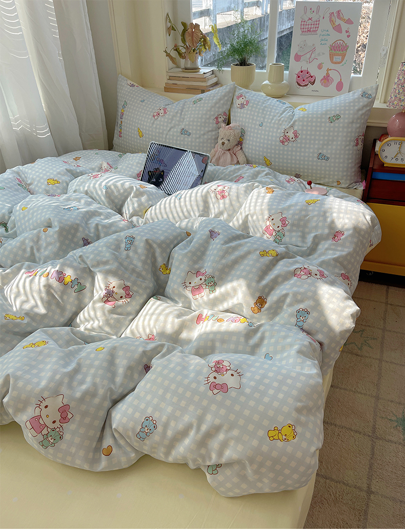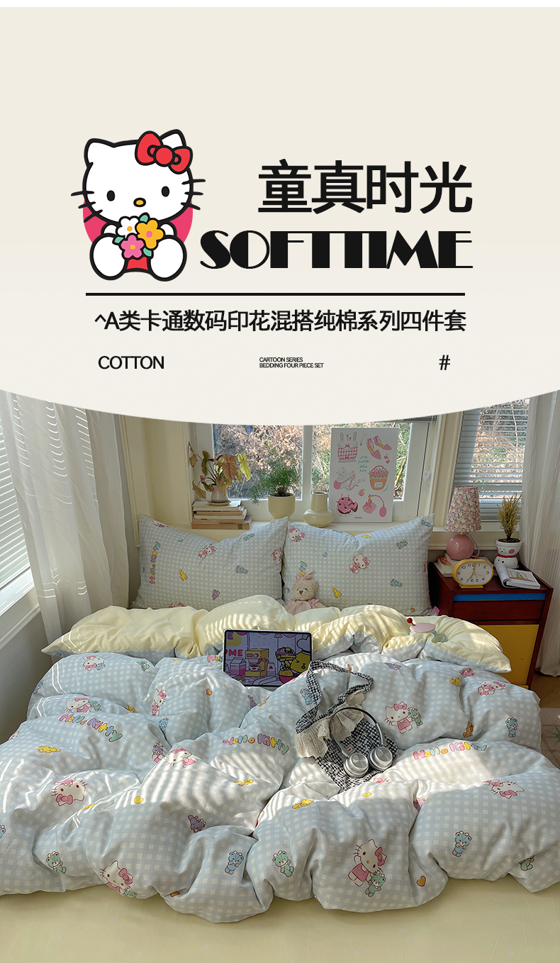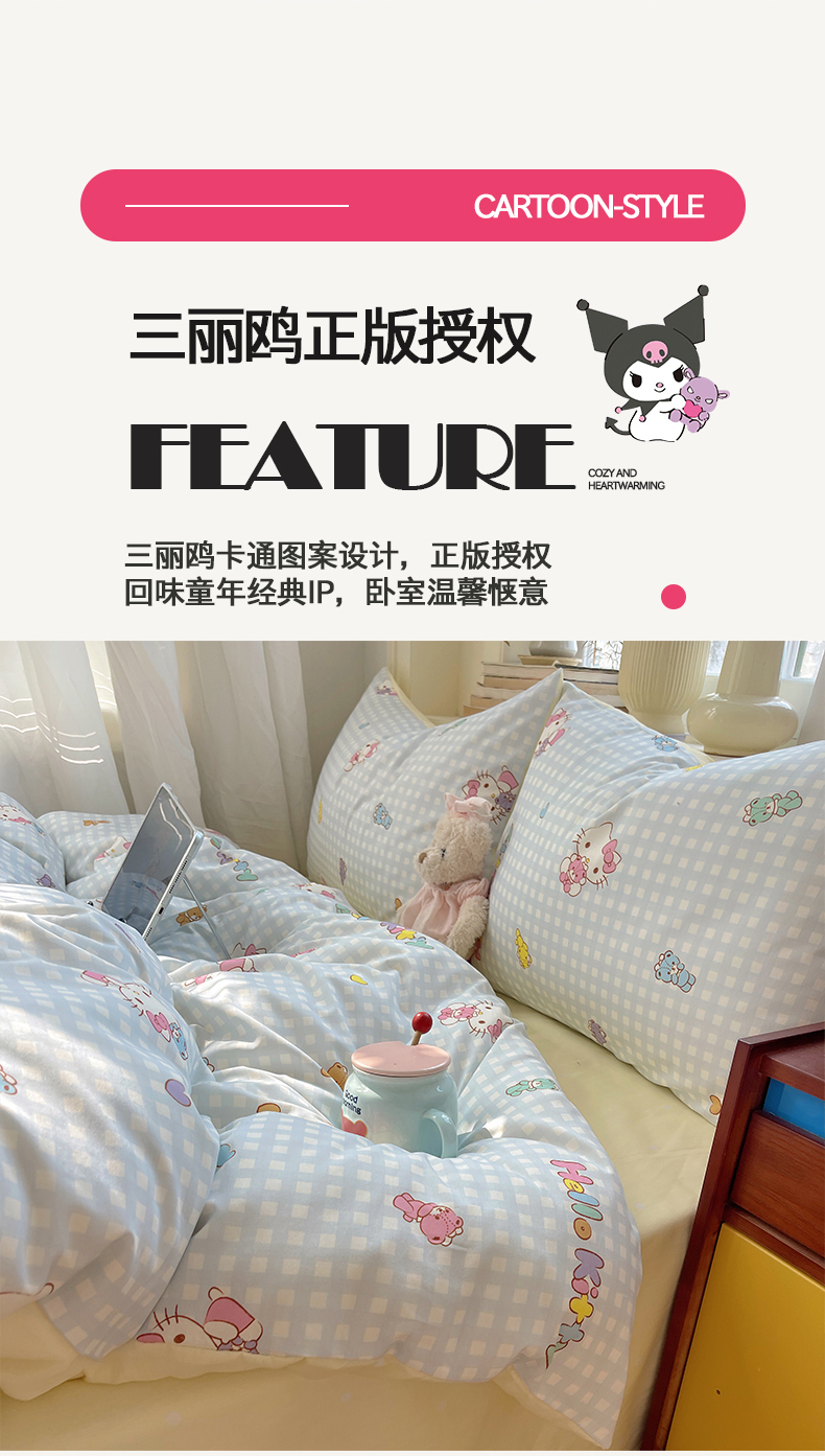 商品名称:桃子家居 2026新款A类三丽鸥正版授权卡通数码印花混搭纯棉印花系列四件套 棉三丽鸥-蓝梦kt