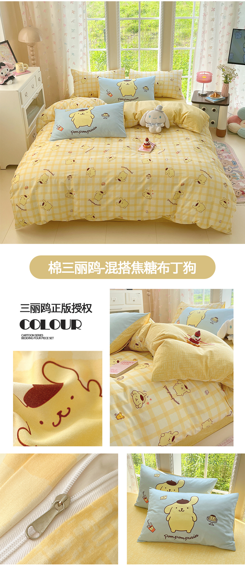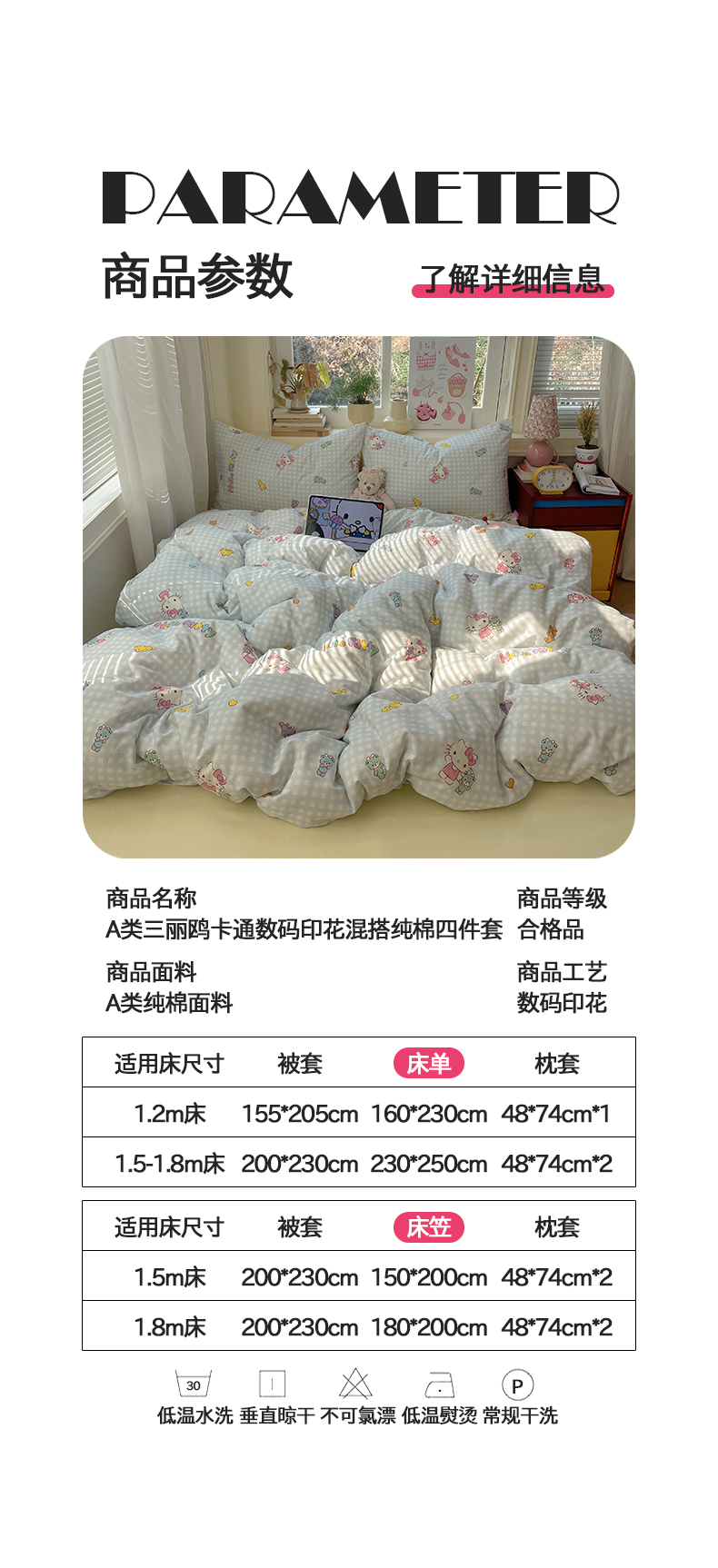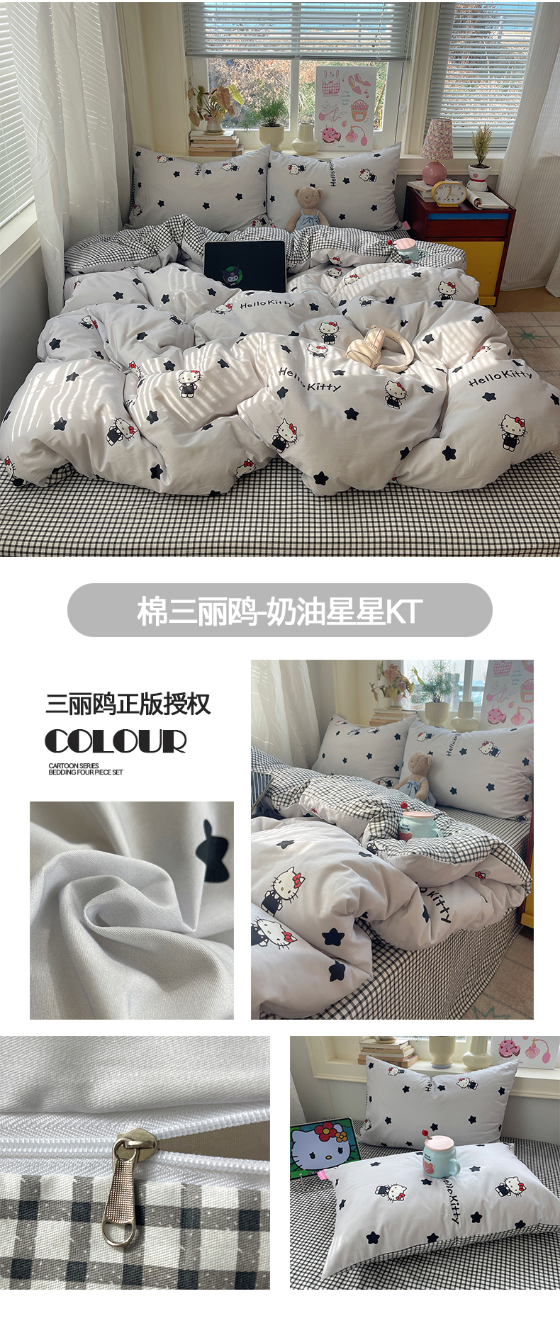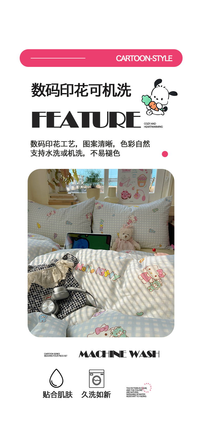 商品名称:桃子家居 2026新款A类三丽鸥正版授权卡通数码印花混搭纯棉印花系列四件套 棉三丽鸥-蓝梦kt