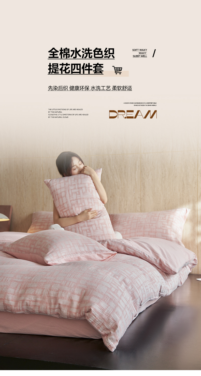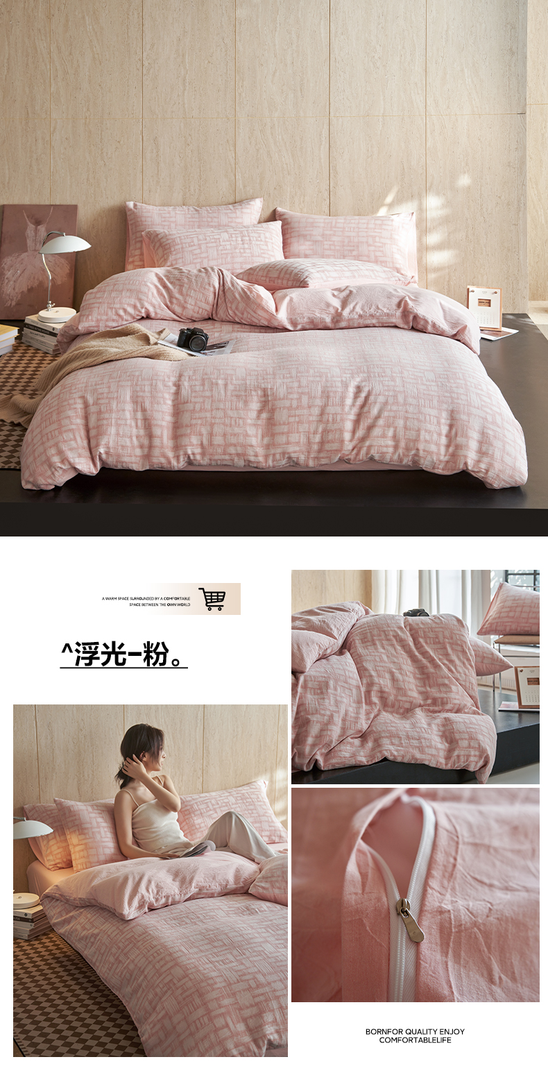 当前位置: 91家纺网 > 商品网购 > 床品套件 > 四件套 > 全棉普通四件套 > 如一 2026新款色织提花全棉水洗棉纯棉四件套第二批 浮光-粉