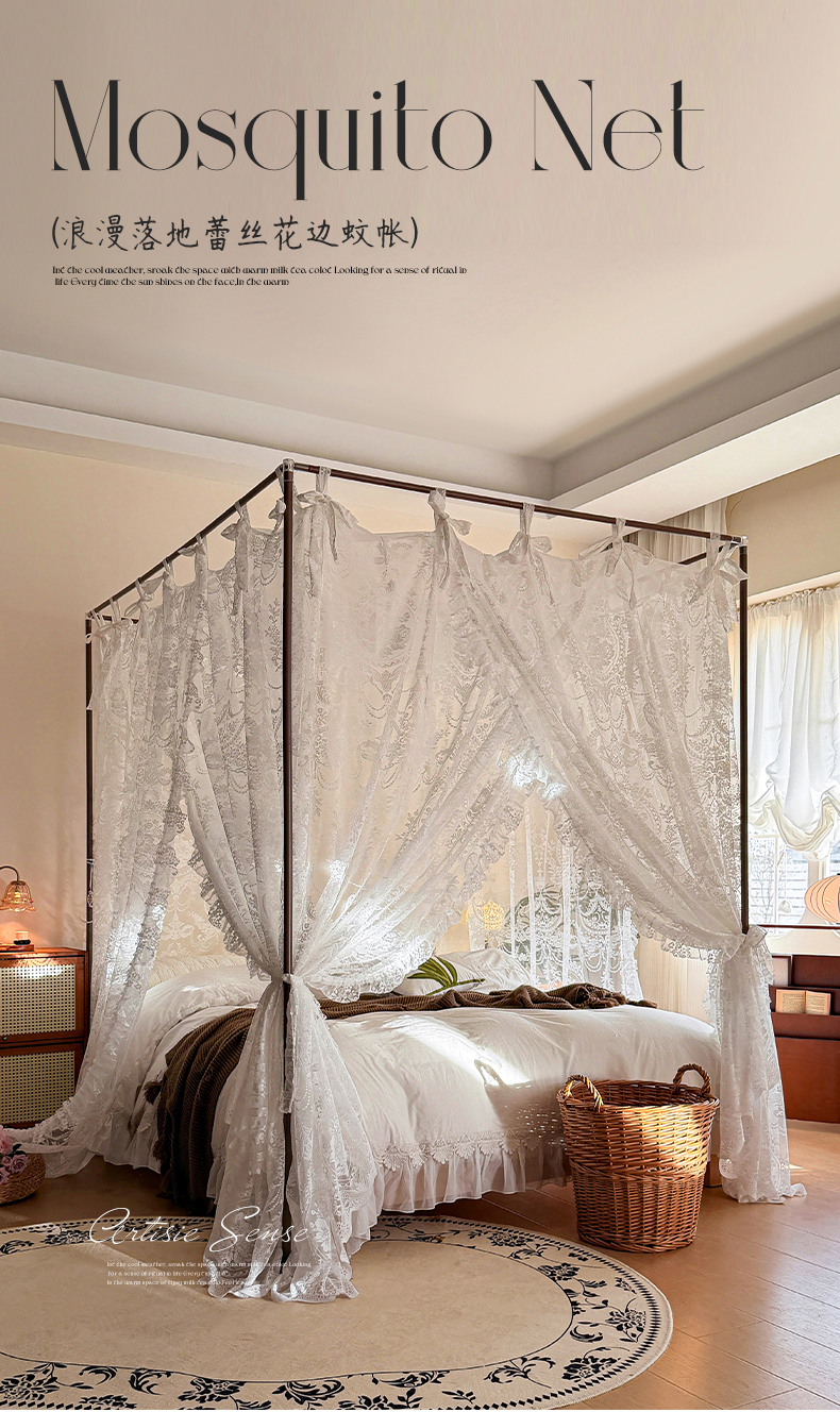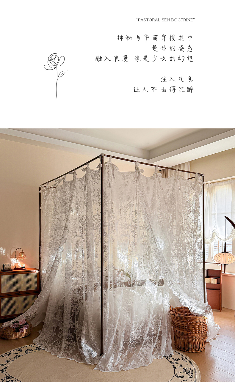 都市缘蚊帐 2026新款浪漫落地蕾丝花边蚊帐905提花系带系列 配套支架