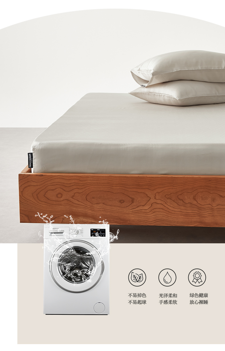 • 91家纺网 家纺一手货源 找家纺 EH家居 2026春夏新款简约纯色天丝单品床笠 珍珠蜜灰