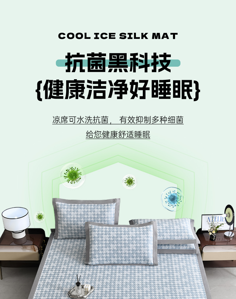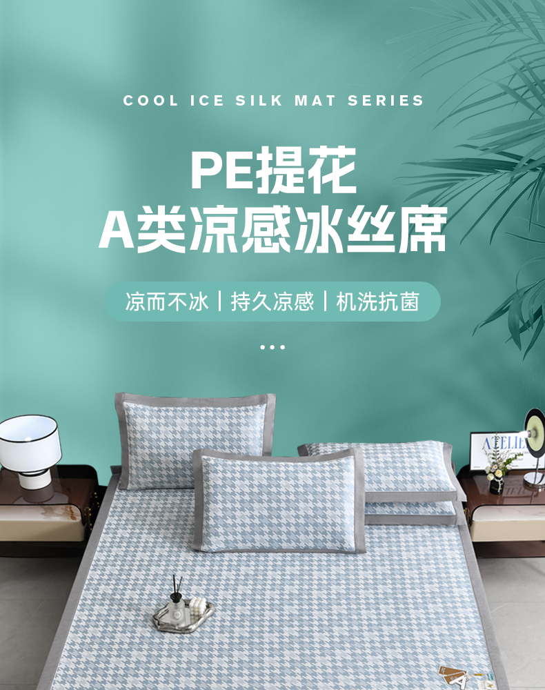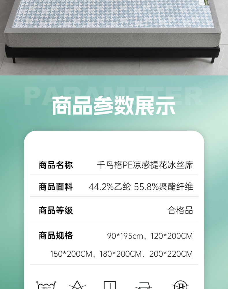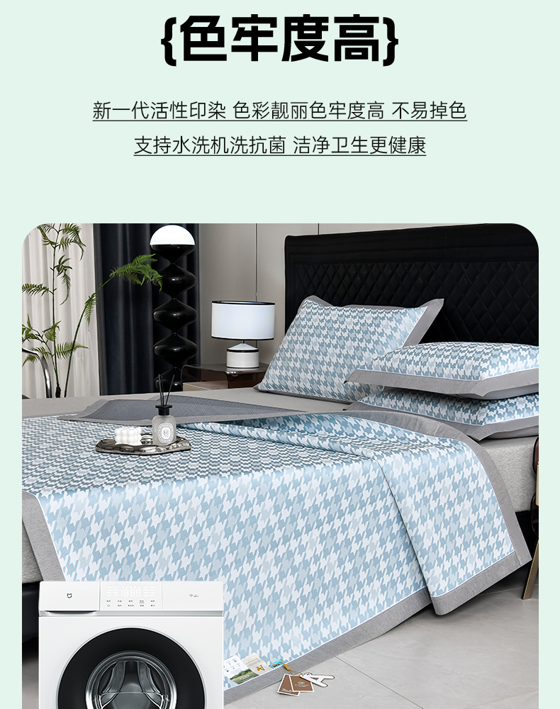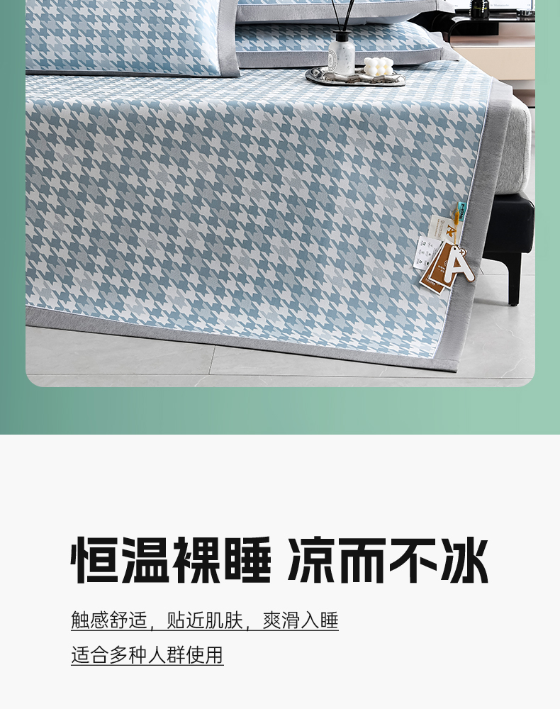 (总)小牛席业 2026新款小冰块大象凉感冰丝席(床笠款)凉席竹席藤席冰藤席乳胶席豆豆席,绿色,粉色,灰色,蓝色,香槟