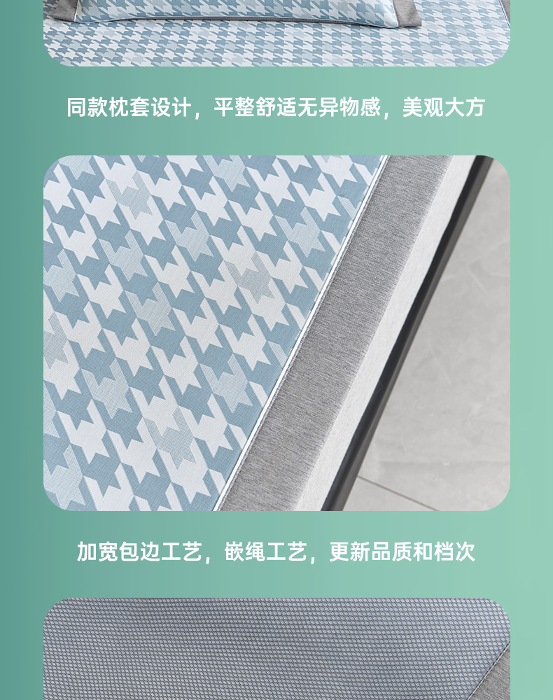 (总)2023新款超精密冰丝席-小斜纹系列-床笠款藤席凉席竹席,粉色,蓝色,绿色,银灰