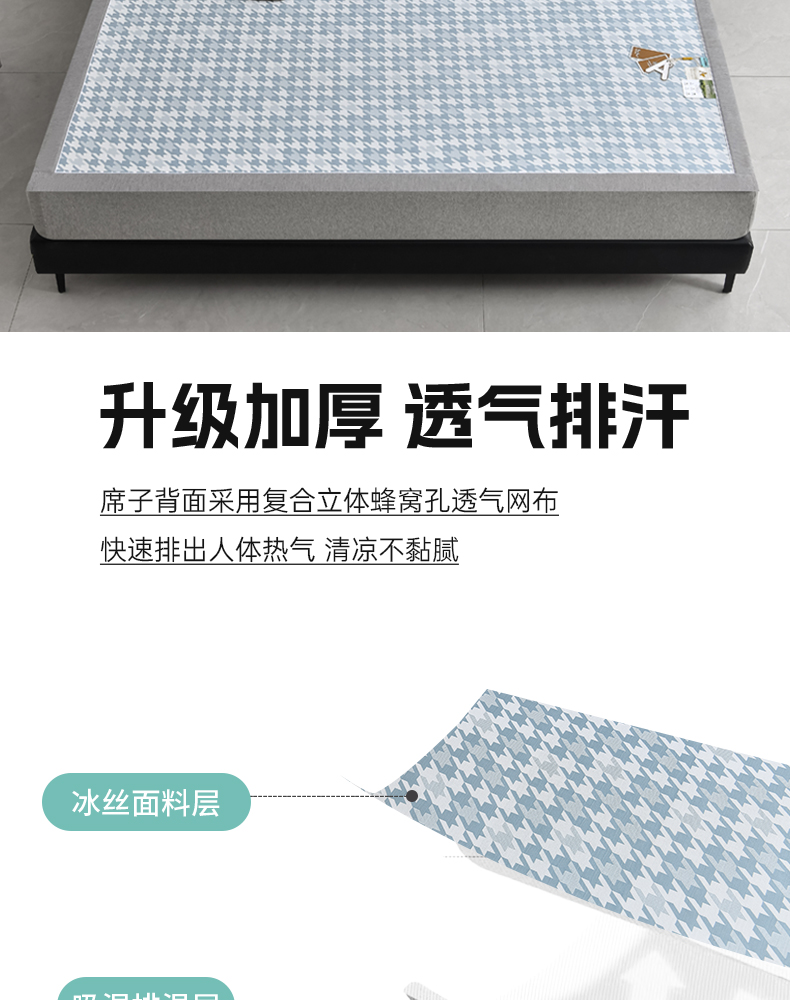商品名称:小牛席业 2026新款PE千鸟格凉感冰丝席席子凉席 蓝色