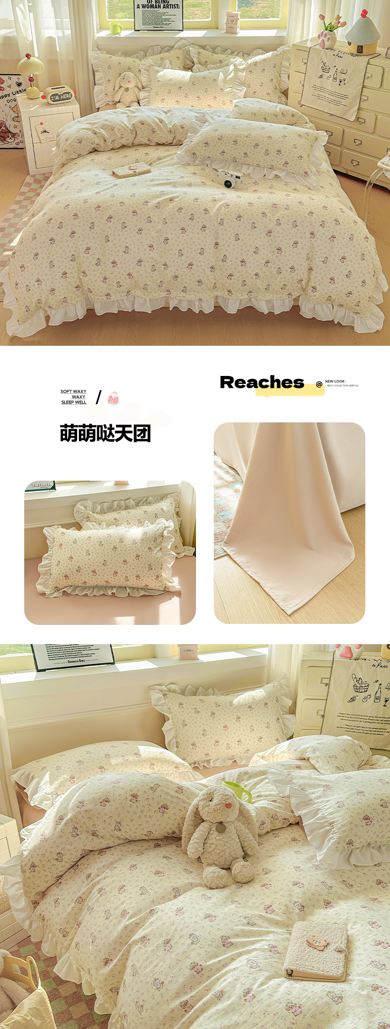 当前位置: 91家纺网 > 商品网购 > 床品套件 > 四件套 > 化纤普通四件套 > 逸尚阁家纺 2026新款水洗仿棉印花花边四件套-终版 萌萌哒天团