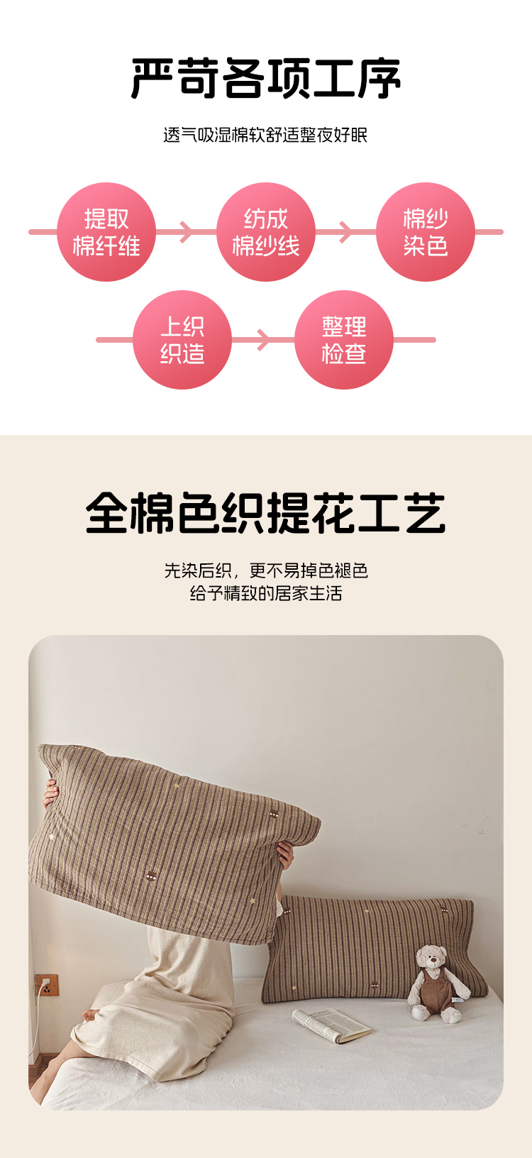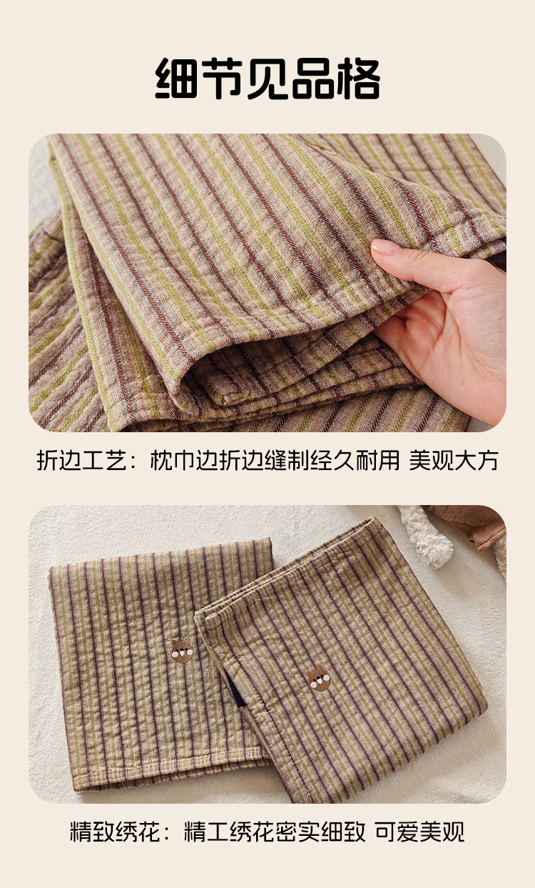 (总)沐瑟家纺 2026新款A类全棉三层色织提花纱布日系纱布枕巾-彩条,彩条 -红蓝,彩条-红绿