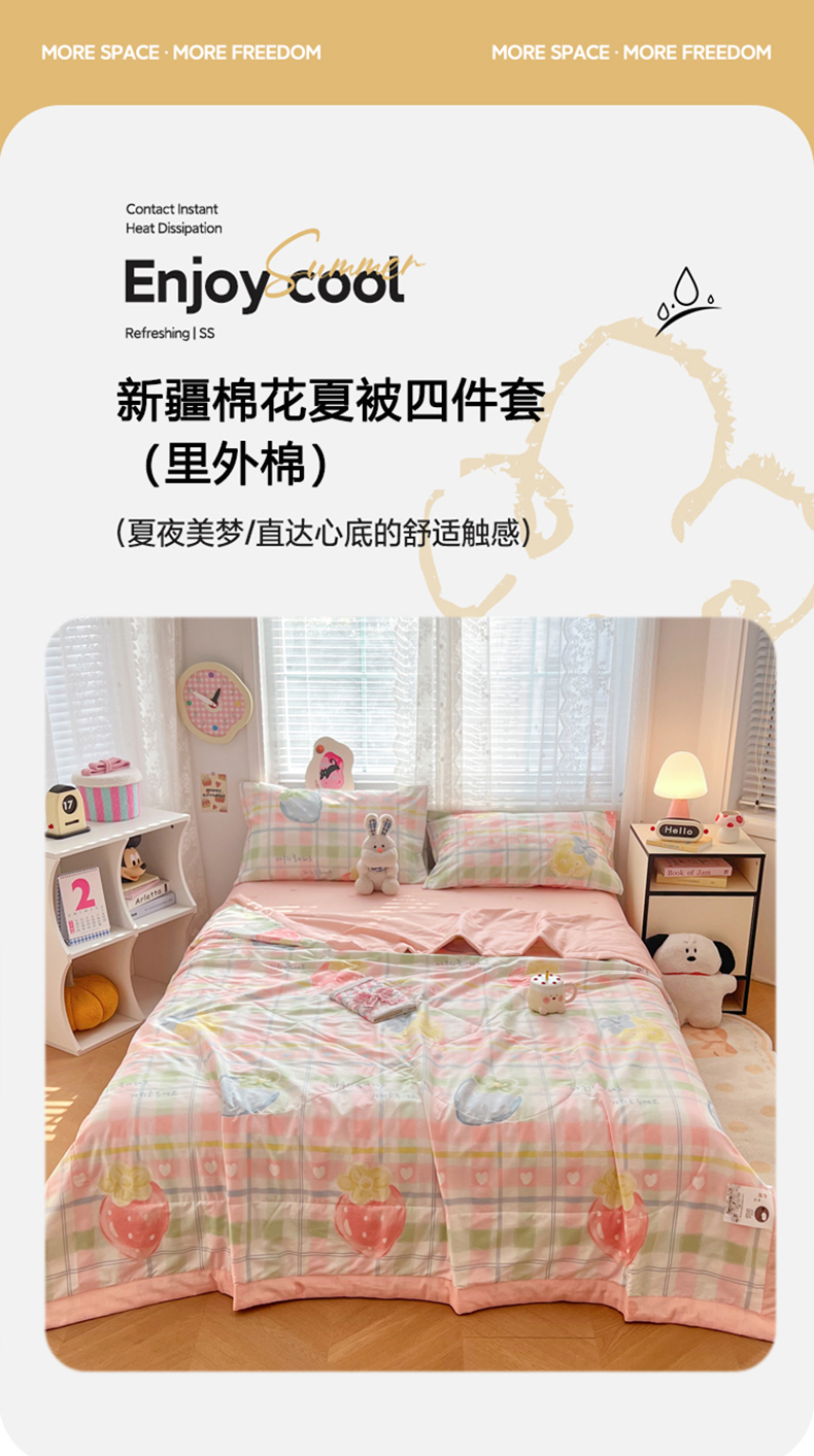 • 91家纺网 家纺一手货源 找家纺 VIP被业 2026新款新疆棉里外棉全棉空调被夏被夏凉被四件套 简单爱