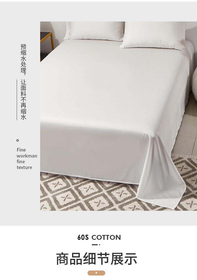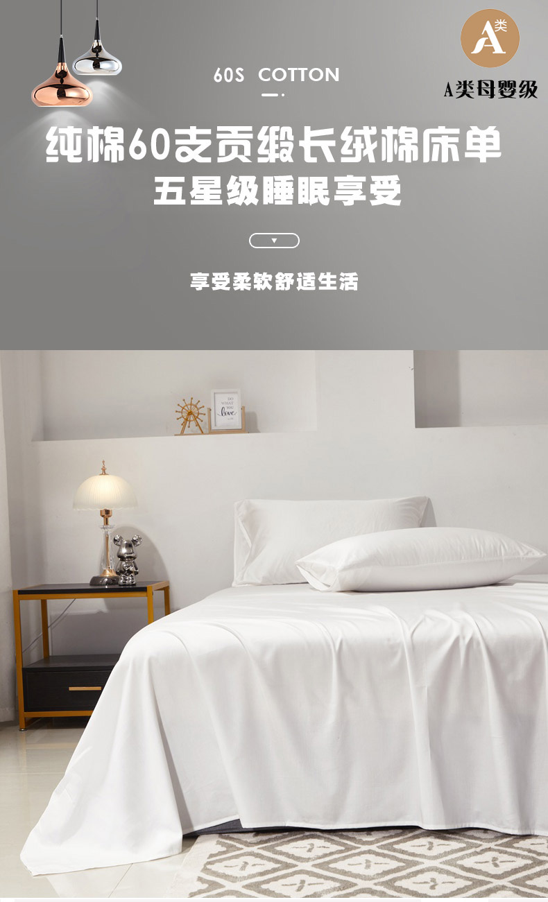 • 91家纺网 家纺一手货源 找家纺 晶缦家纺 2026新款全棉A类纯棉60支贡缎长绒棉纯色单床单单品床单床单单件 琳琅-本白色