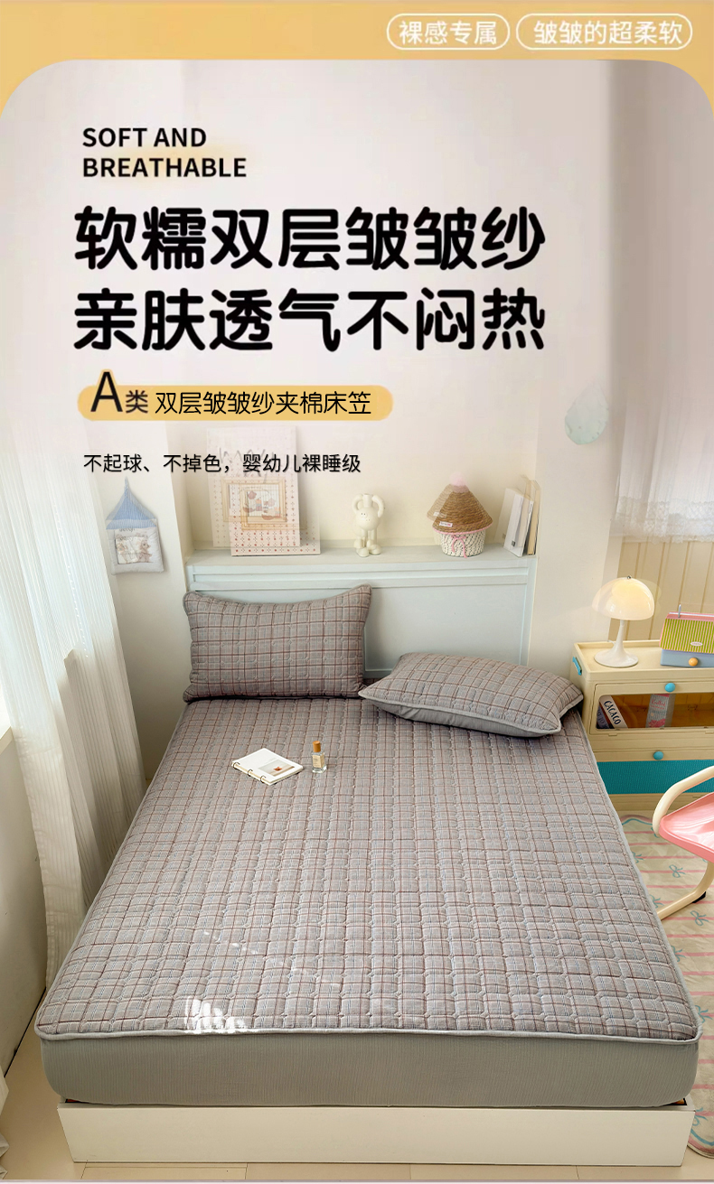 丽美人家纺 2026新款双层皱皱纱大豆夹棉床笠单床笠床笠单件 JM布兰卡