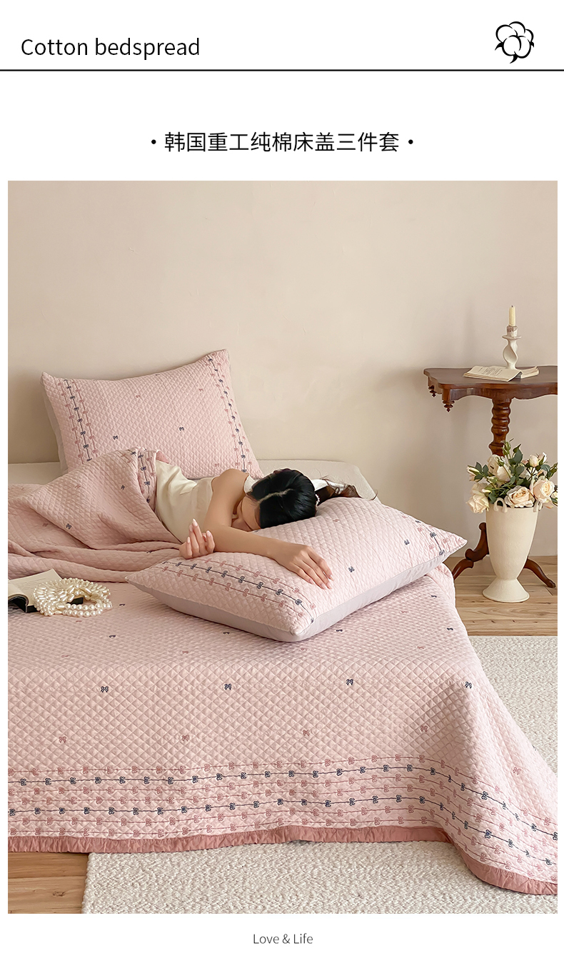 (总)麻依 2026新款韩国重工全棉纱布床盖床盖三件套,楼兰-粉,楼兰-米白,洛格羽,祈福-米白,祈福-水蓝,晴岚-灰咖,晴岚-米白,三叶草,小花排排,烟雨-粉,烟雨-灰咖,韵语-驼,组合图仅供展示-不可下单