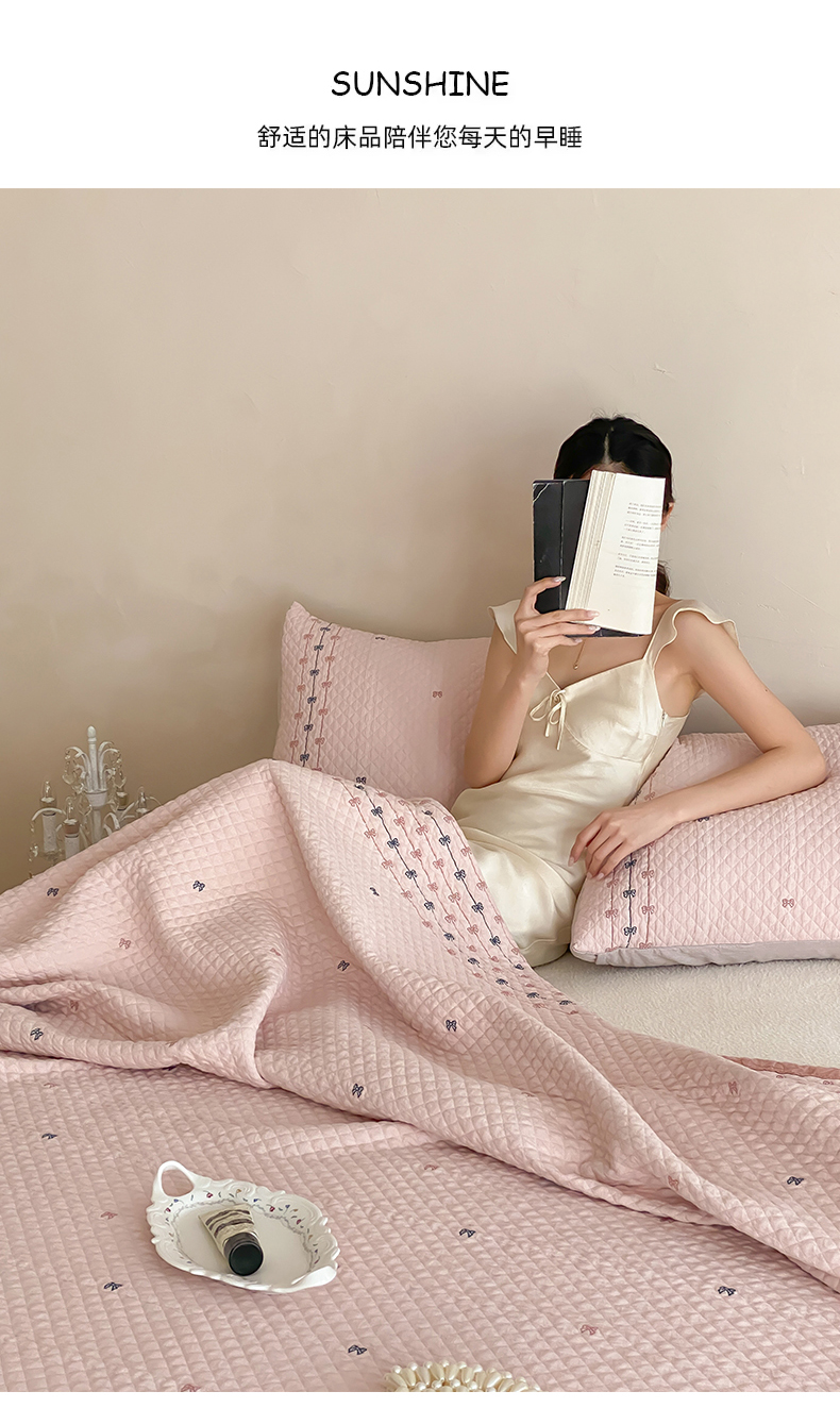 商品名称:麻依 2026新款韩国重工全棉纱布床盖床盖三件套 组合图仅供展示-不可下单