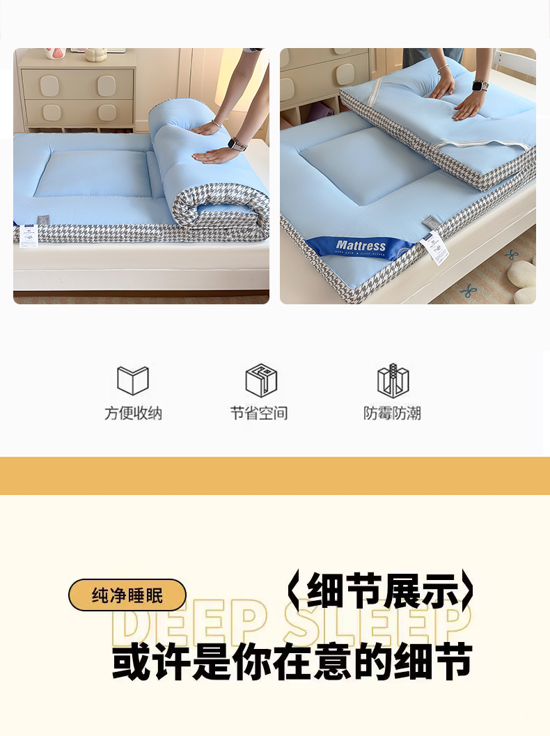 当前位置: 91家纺网 > 商品网购 > 床垫/床褥 > 普通床垫 > 优雅星家纺 2026新款A类水洗棉抗菌大豆床垫千鸟格系列 蓝色