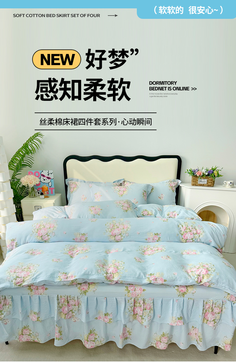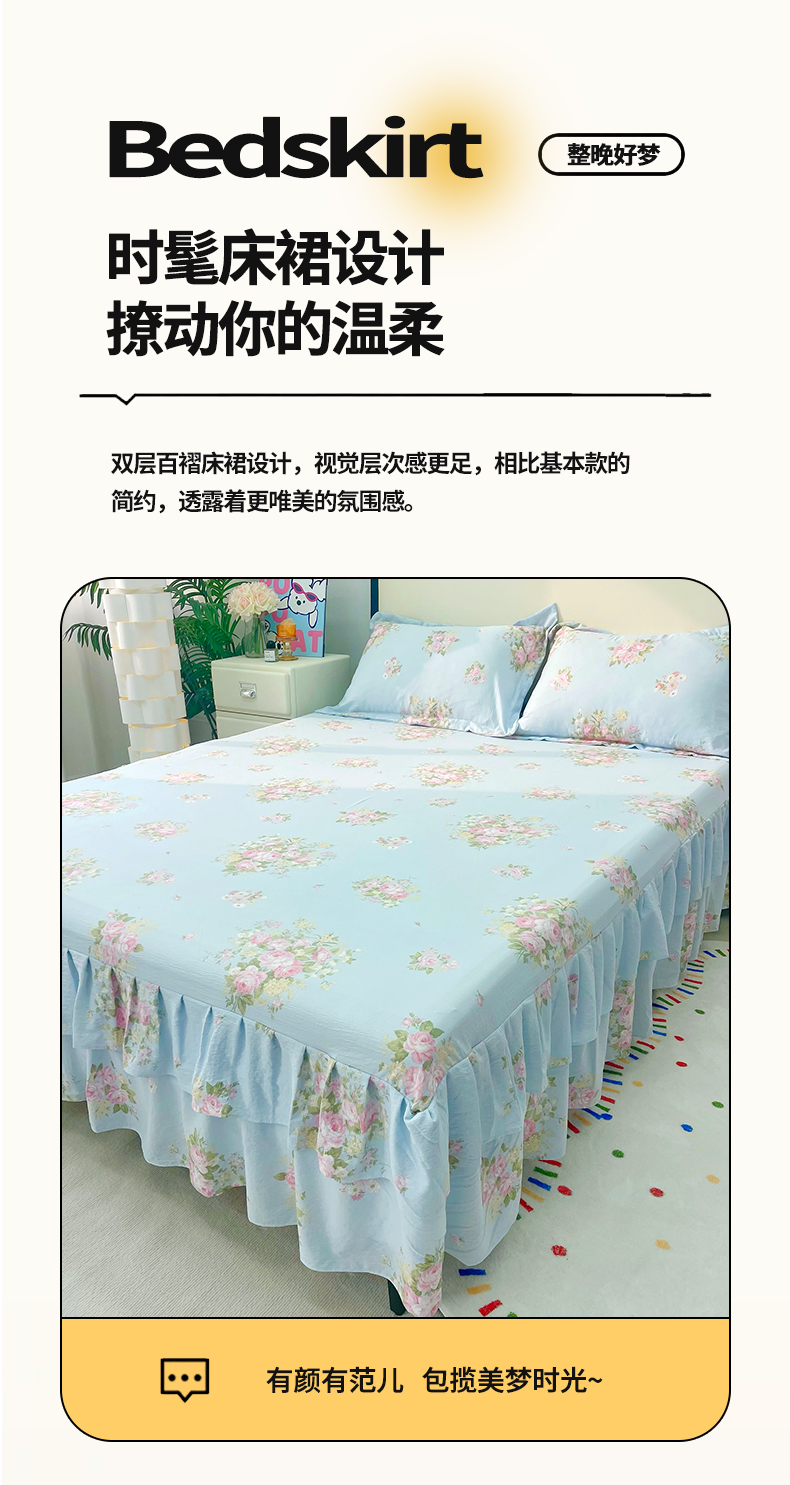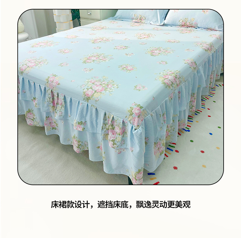 商品名称:九诺家纺 2026春夏新款丝柔棉皱皱纱床裙四件套双花边工艺床裙 安妮-花语时光