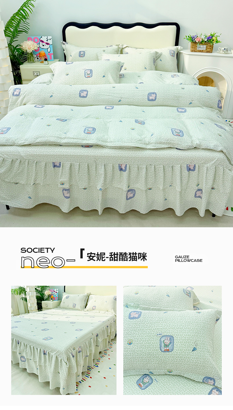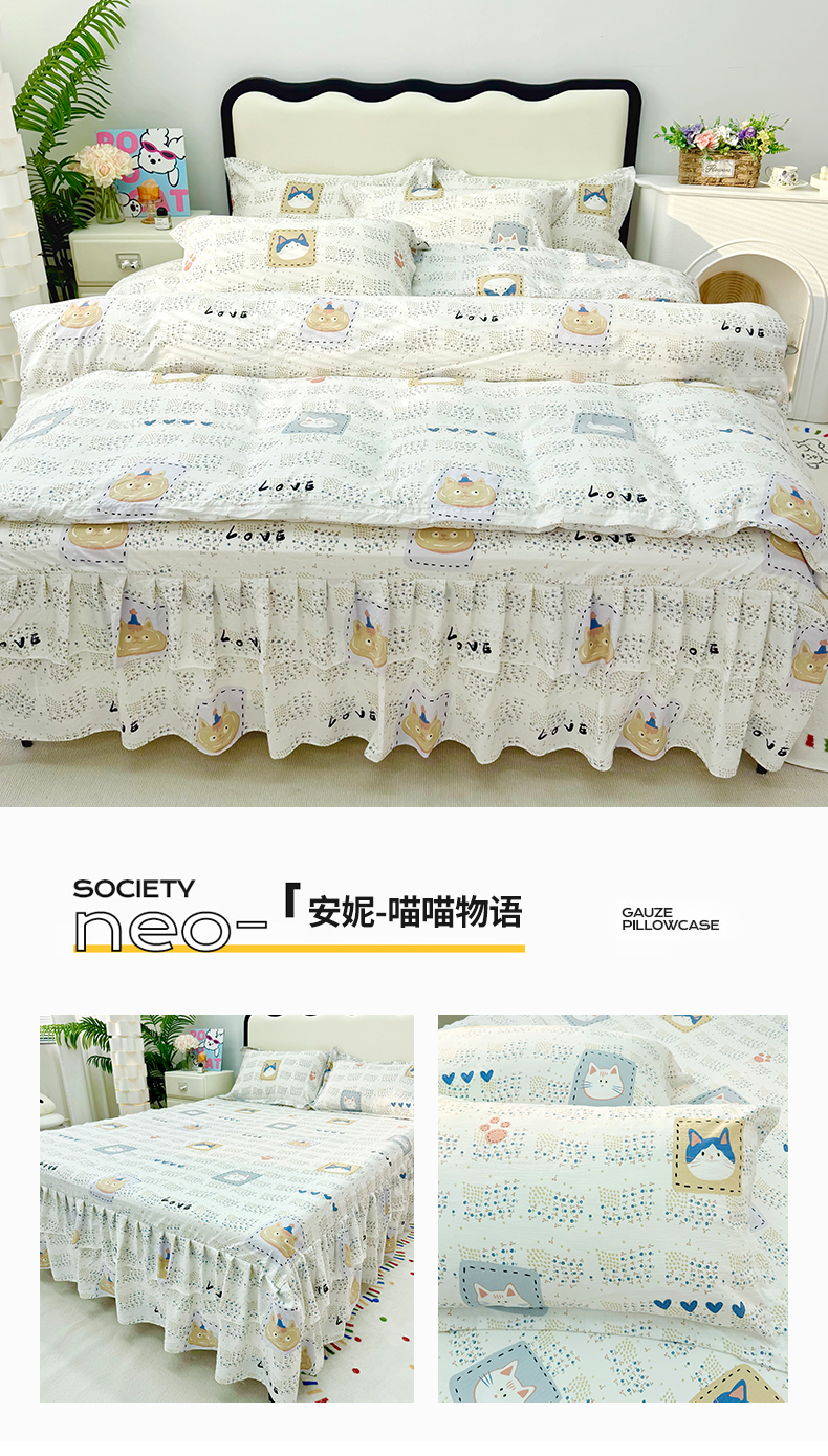 (总)九诺家纺 2026春夏新款丝柔棉皱皱纱床裙四件套双花边工艺床裙,浪漫心动,一见倾心,海岛青春,快乐伙伴,南笙假日,欧若拉,少女情结,圣代甜喵-粉,安妮-豹纹KT,安妮-草莓女孩,安妮-春意安然,安妮-花谷,安妮-花语时光,安妮-马上有福,安妮-喵喵物语,安妮-暖心小狗,安妮-蔷薇语,安妮-甜酷猫咪,安妮-星星兔,安妮-幸福飞马,安妮-紫薇花