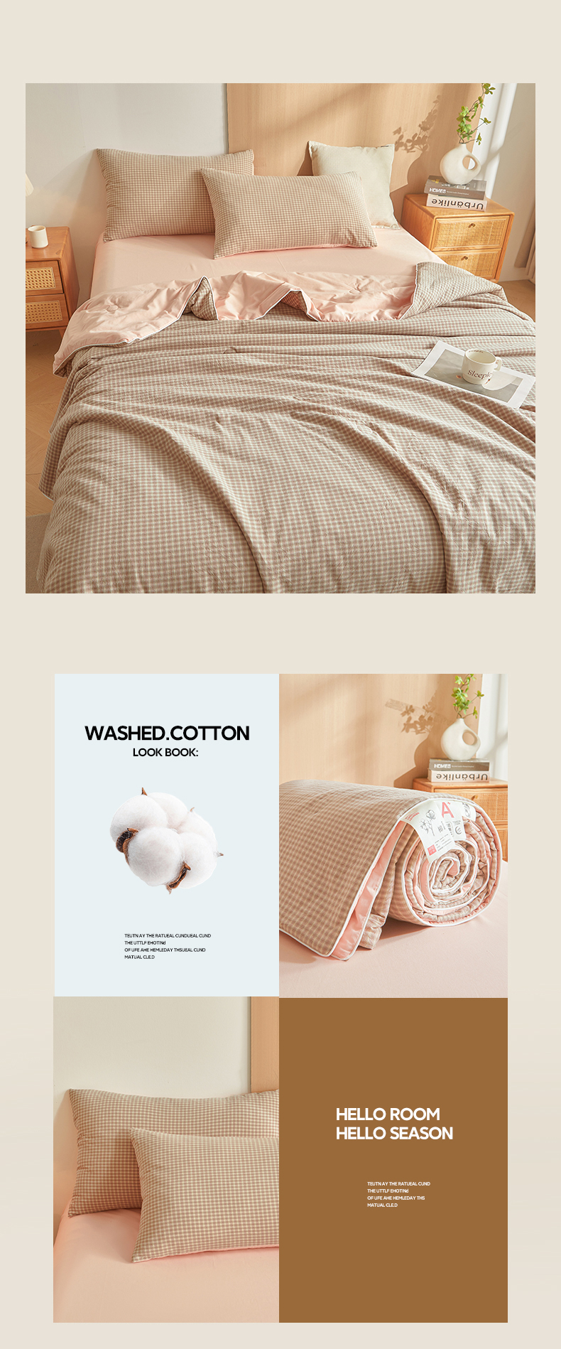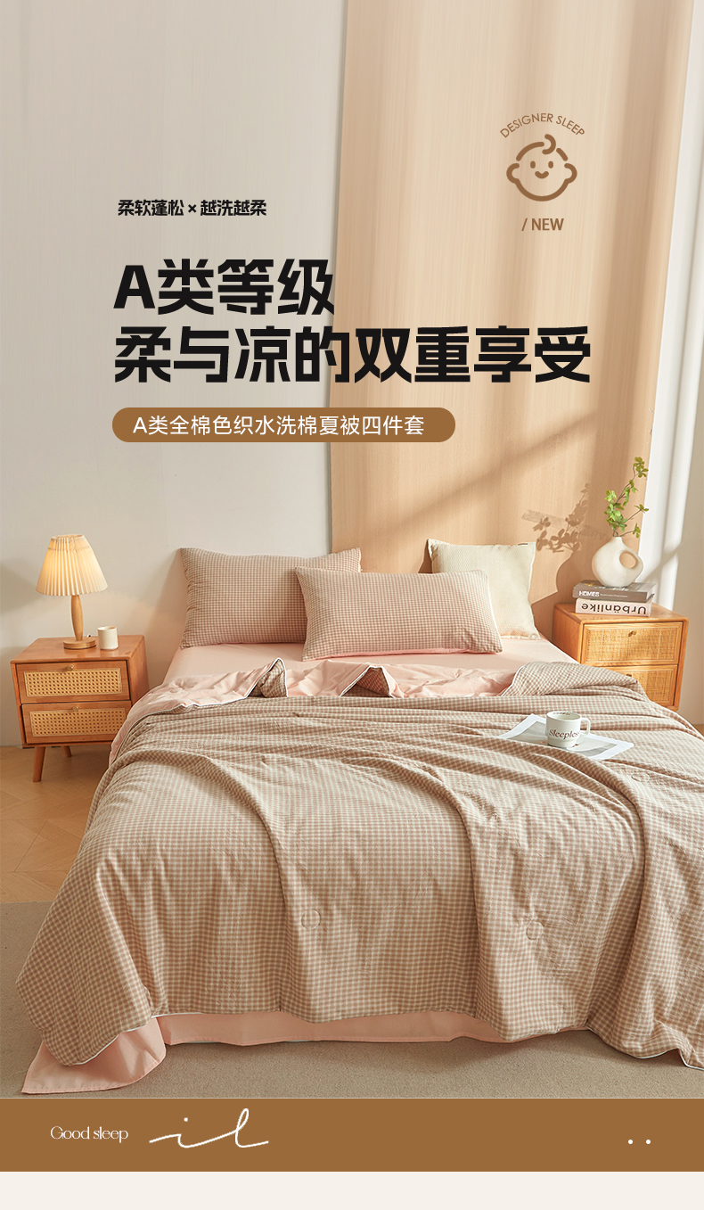 • 91家纺网 家纺一手货源 找家纺 典冠 2025新款A类全棉色织水洗棉夏被夏凉被 琥珀粉
