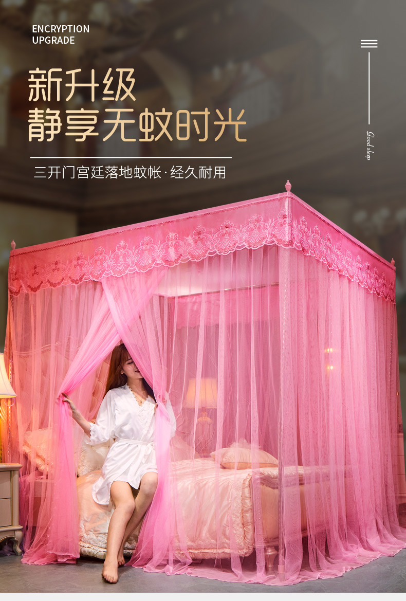 (总)冉美 2024新款高颜值落地宫廷蚊帐-恋情,粉色,黄色,白色,玉色,紫色
